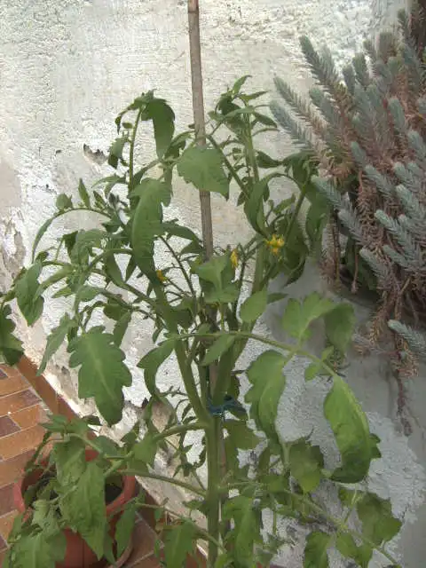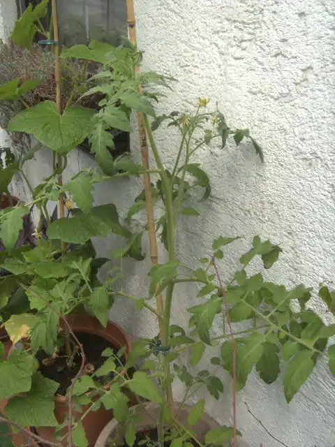 Zumindest haben die Garagenwand-Tomaten jetzt schon mal richtig Blätter bekommen.