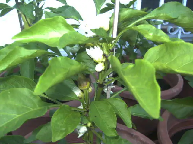 Paprikas haben bereits Früchtchen, schieben aber trotzdem Blüten ohne Ende.