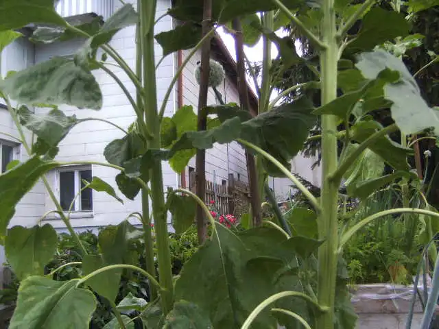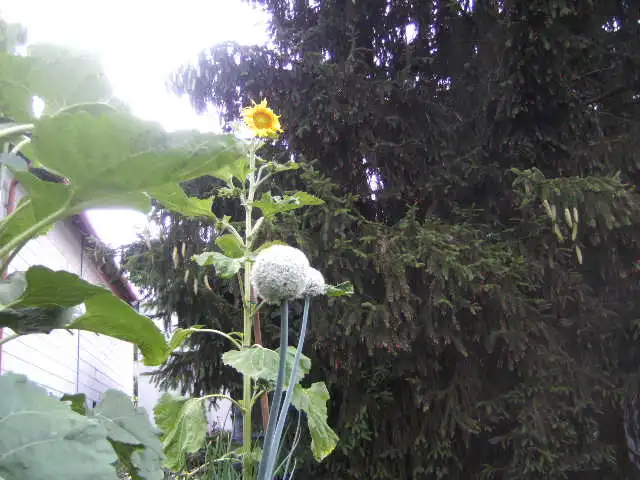 Sonnenblumen und Akantus haben Stützstäbe bekommen, Golrute und