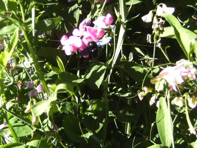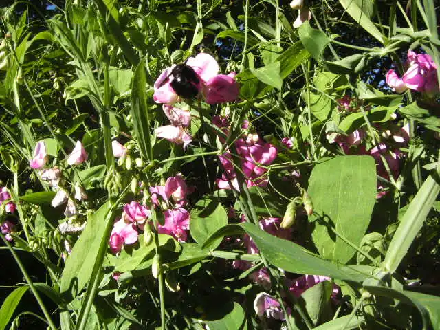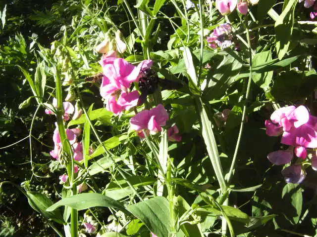 auch dieses Jahr wieder hier ist - die Holzbiene. Kaum fangen die Staudenwicken