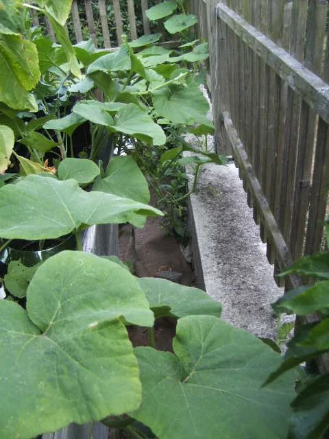 Die Kürbisse haben mittlerweile die ganze Ecke erobert und krabbeln schon