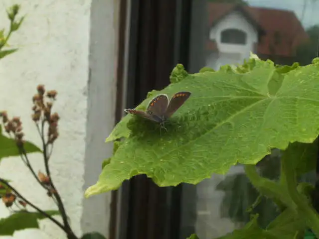 Hab vorhin einen Mini-Schmetterling auf einem Gurkenblatt