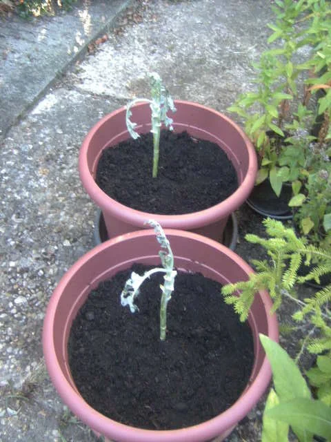 und dann die etwas traurig drein schauenden Stiele in neue Erde