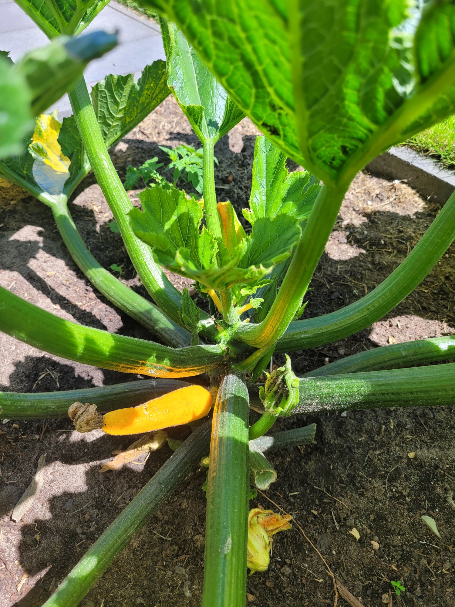 Die Früchte der grünen im Beet sind super, die gelbe wird durch Blattläuse geplagt und alle Blüten und Früchte verkümmern