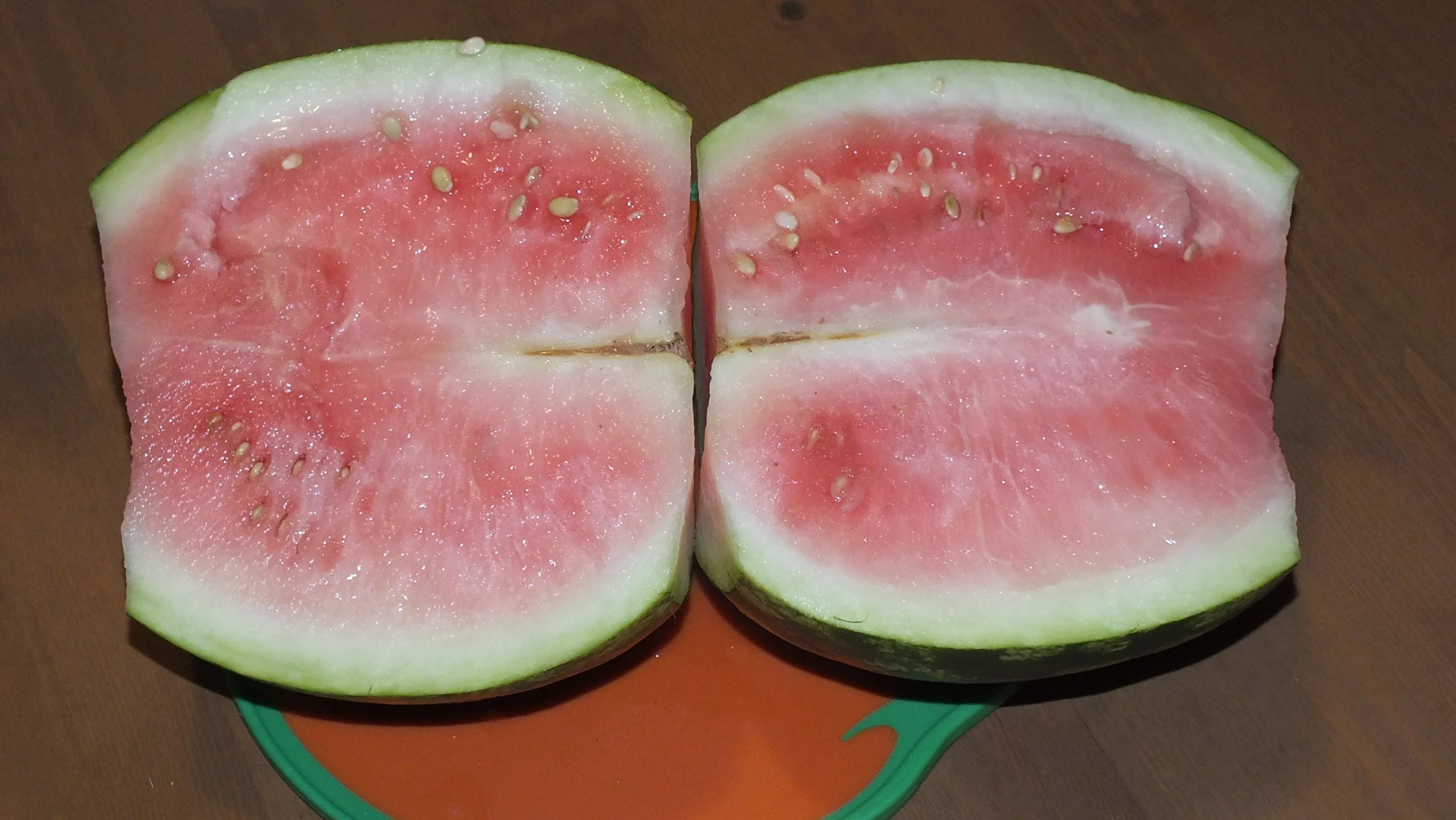 ich möchte heute einen Erfolg zeigen. Ich habe im Frühjahr eine Wassermelone gepflanzt. Sie wuchs wunderbar hatte aber bis Mitte August nicht eine Frucht. Dann kamen 4 mit einem Mal. Zum Glück begann die heiße Zeit, fast 4 Wochen Hitze. DSCF8019.webp Gestern haben wir die erste geerntet. Sie (3925g) ist nicht so rot, wie gekaufte, aber sehr süß und uns hat uns gut geschmeckt. Wir freuen uns auf die nächsten und werden es nächstes Jahr definitiv wiederholen.DSCF8243.webp Viele Grüße Pia