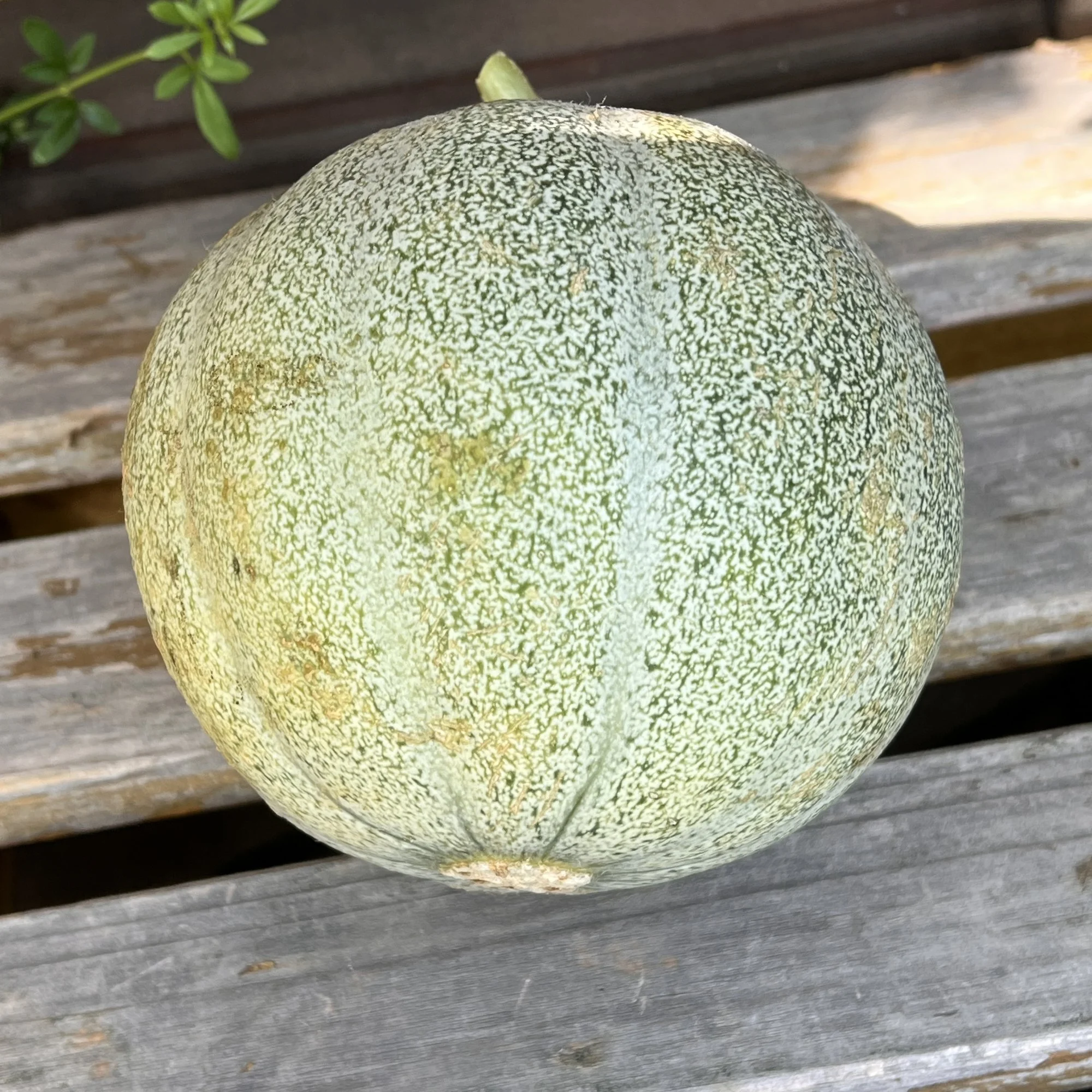 Meine sehen genauso aus. Ich weiß auch nicht, was das für eine Melone ist. Aber reif ist sie noch nicht. Demnächst sicherlich.Also ich habe keine Ahnung, was ich da angebaut habe. Aber es war Melone und es war reif. In der Kiste unten rechts.