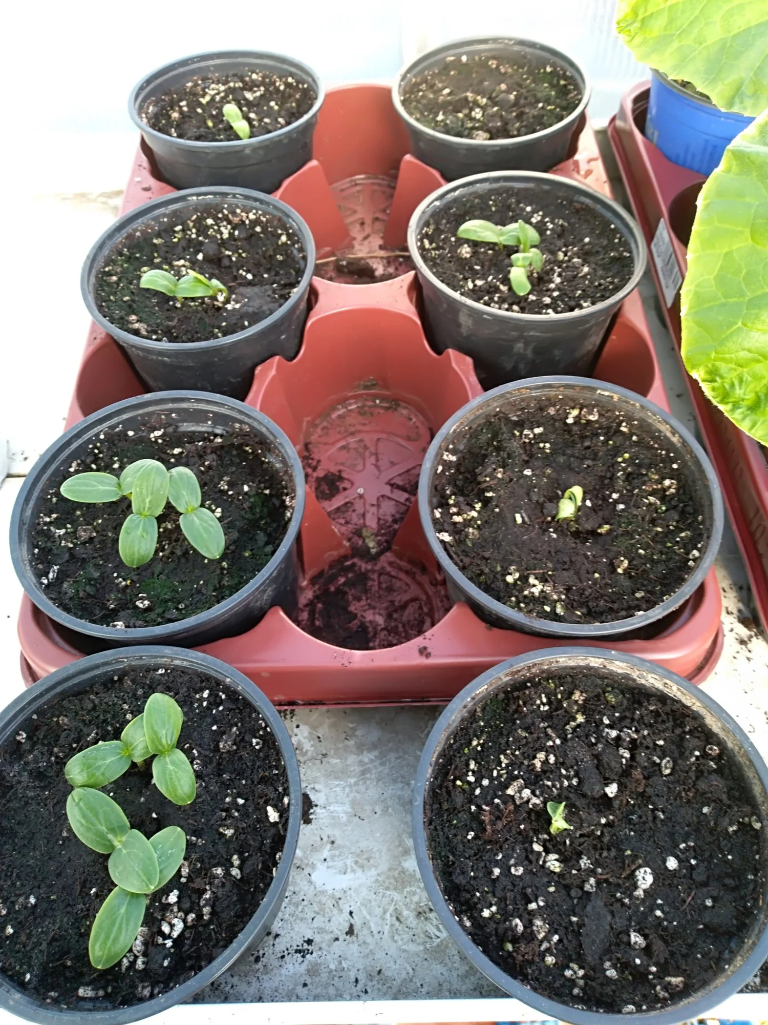 • ...und hier, zusätzlich zu den Melonen und Zucchini, meine Gurkenaussaat.