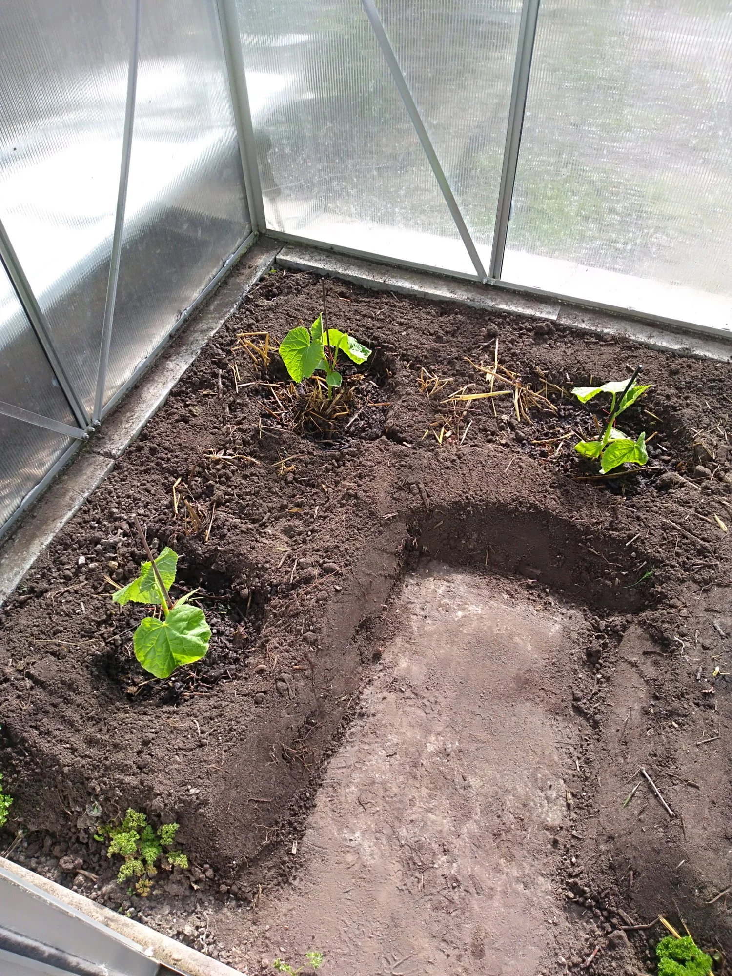 ich habe heute die Salatgurken ins Gewächshaus gesetzt.