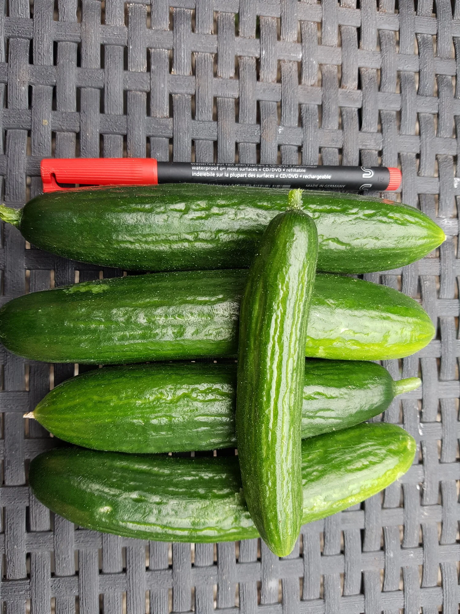 Edit - gestern wurden hier Gurken geerntet und gegessen, trotz 33°C im Schatten und mit kaltem Wasser gegossen, nicht bitter.