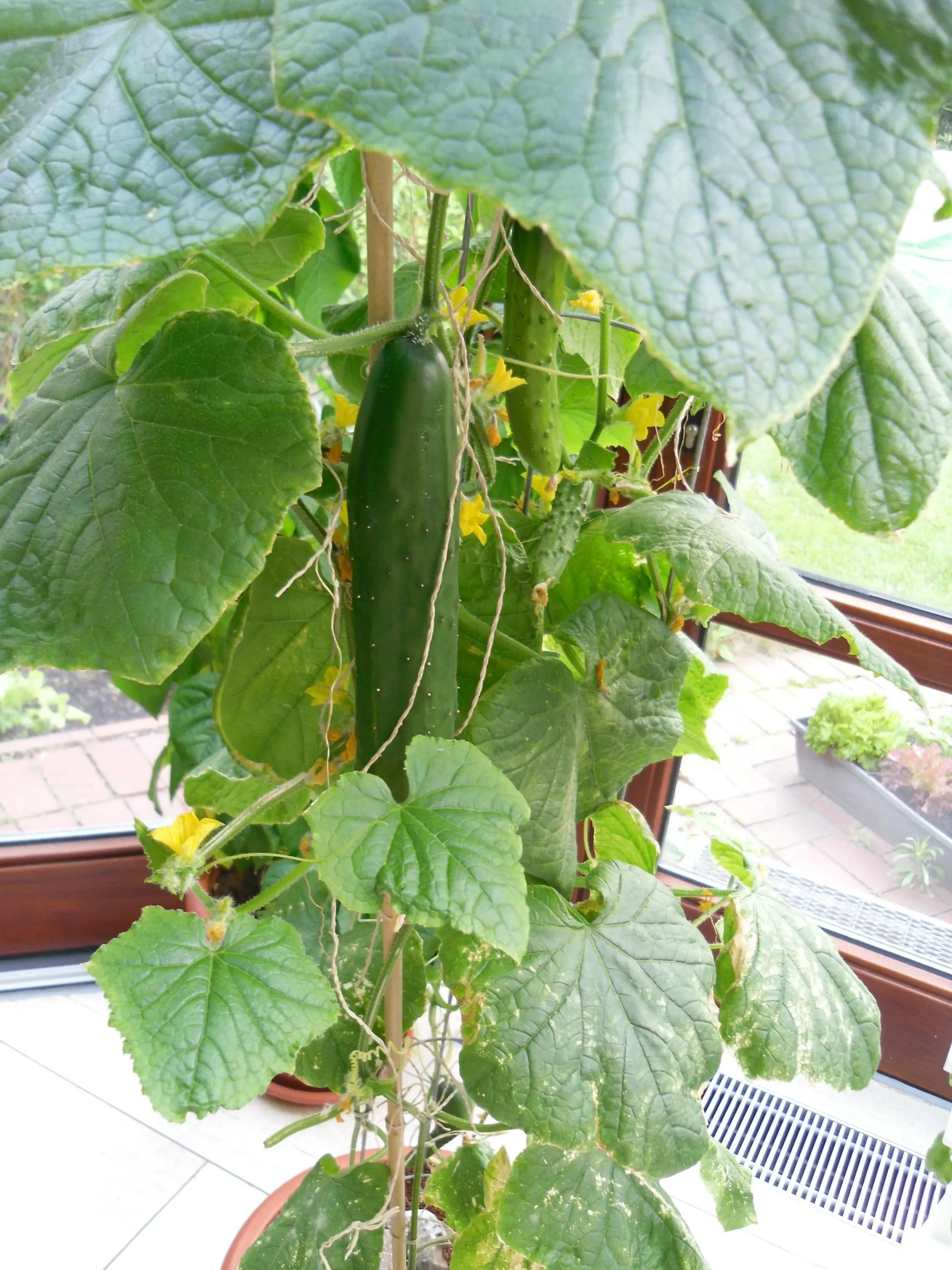 Das witzige ist, dass meine Gurke das Wetter der letzten Tage mochte. Ich hatte die ja in Kübeln im Wintergarten großgezogen und ihre Blätter hatten stark gelitten (pergamentartig vertrocknet). Irgenwann hab ich die Töpfe rausgestellt und die auch Nachts und im Regen draußen gelassen und das hat der richtig gut getan. Trotz kühleren Temperaturen wuchs alles fröhlich weiter und es konnten auch schon 2 Gurken geerntet werden und zwei bis drei weitere sind reif bis fast reif. Erstaunlicher weise sind die Blätter "aufgeblüht" also frisch und grün geblieben/geworden. Die mochten das Klima. Aufgrund der Kälte sind sie derzeit wieder drinnen, aber ich glaub ich stell sie morgen wieder raus..