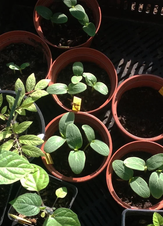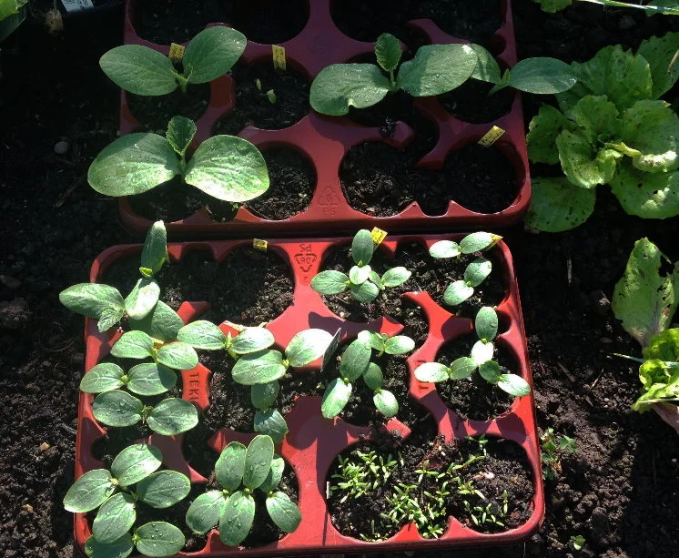 nachdem ich die Salatgurken bereits ausgepflanzt hatte wird es jetzt auch den kleinen weißen Eiergurken zu eng, also werden sie in Kürze aus ihren Töpfen befreit.