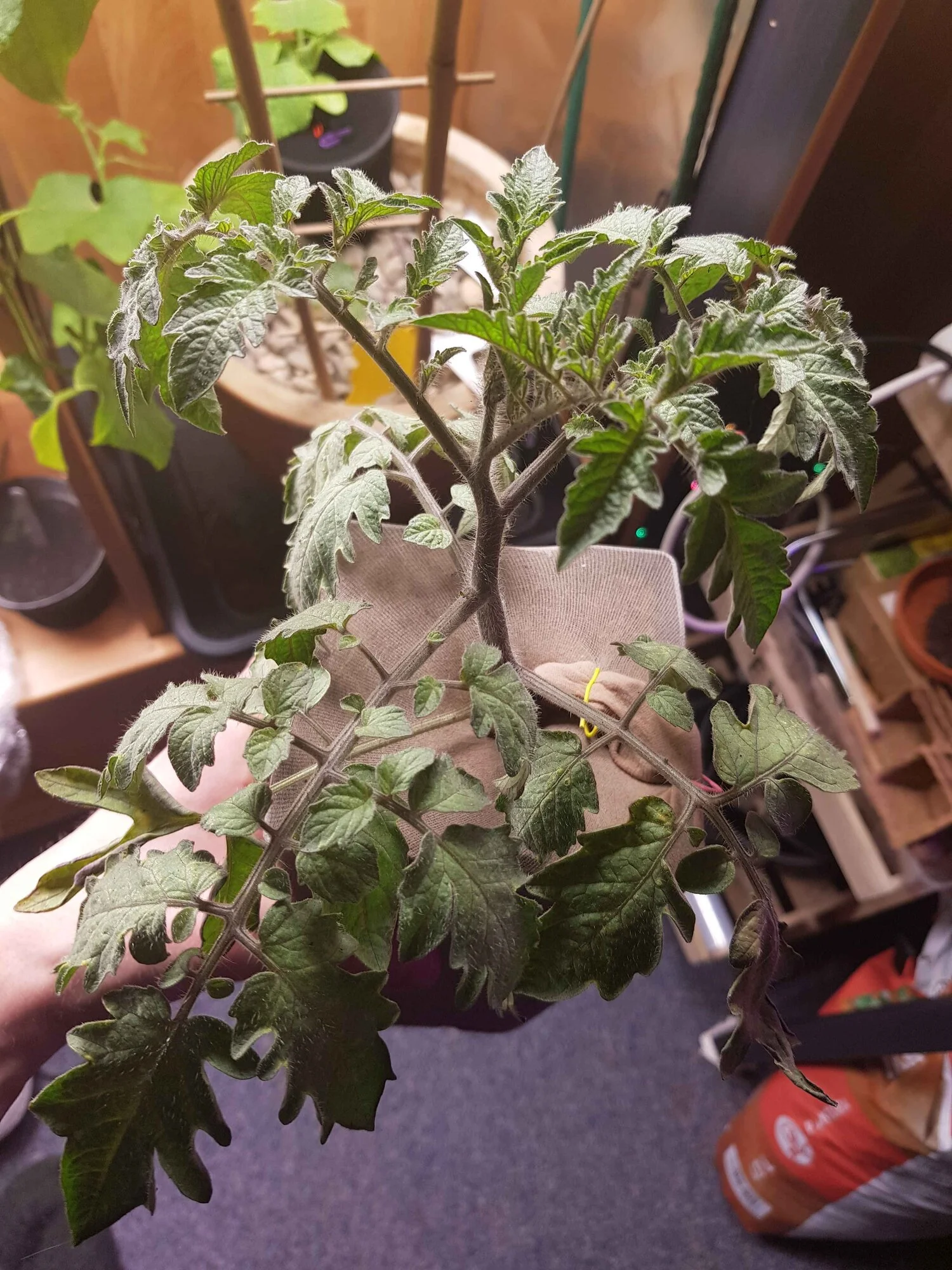 Das Ausspülen war auf die Tomate bezogen da sie stark befallen war. Sie ist mit den Netzstrümpfen vollständig versiegelt und sollte nix mehr rankommen. Lässt derzeit etwas das Blattwerk hängen. Hatte sie davor ja auch überdüngt gehabt, daher hatte ich ein umtopfen als notwendig erachtet.