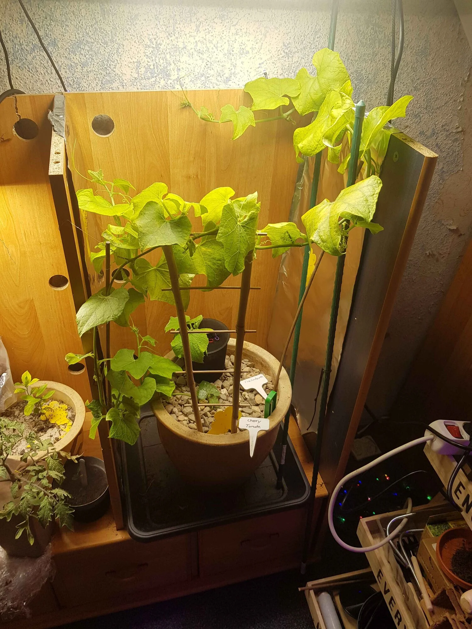 Licht geht per zeitschaltuhr. Wasser würde ich mit dem Messbecher machen. Immer oben antrocknen lassen. Diese Pflanzengrösse alle 2-3 Tage.