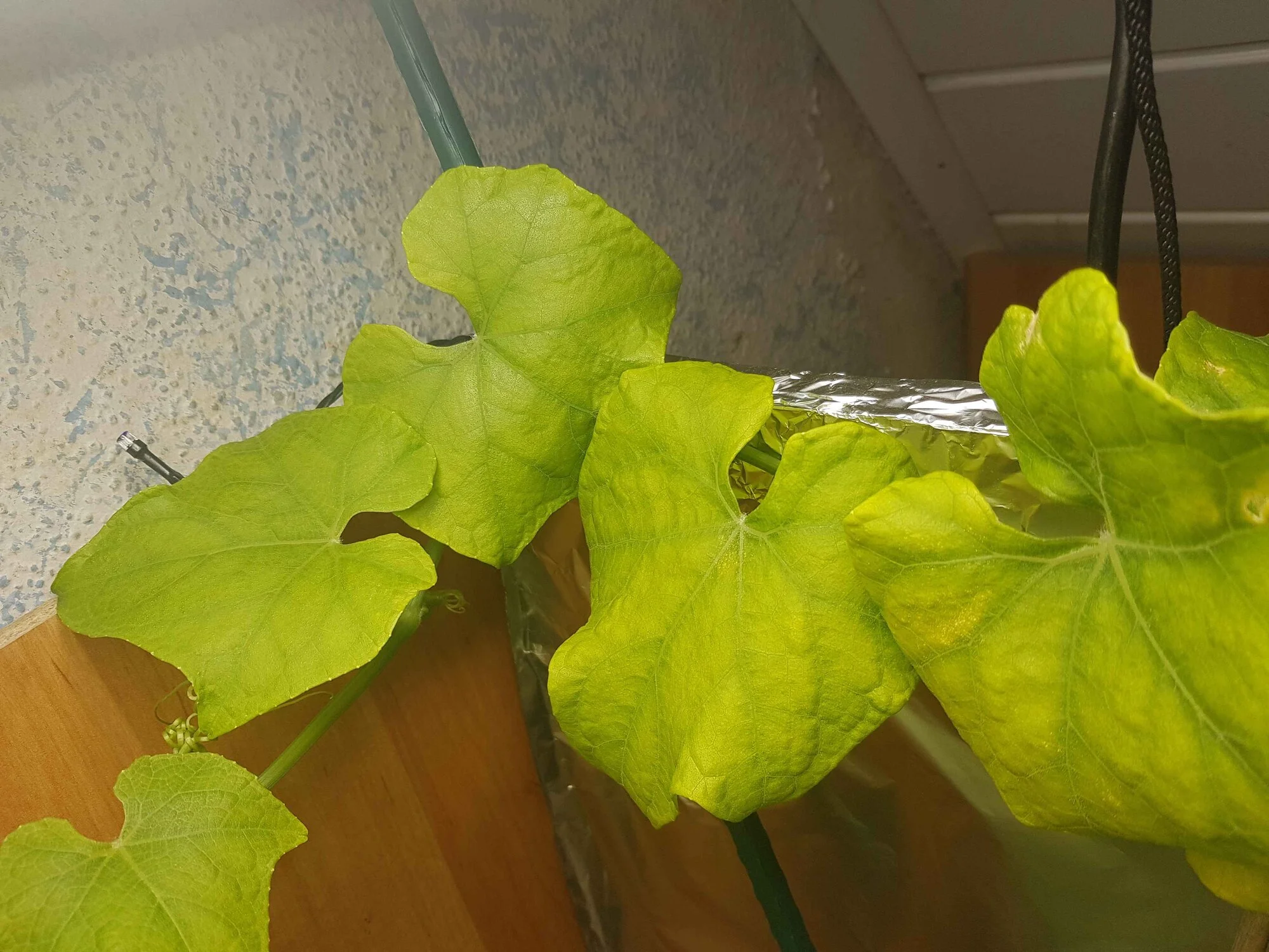 Lampe war stellenweise zu nah..daher haben Blätter oben leichte Brandspuren abbekommen. habe sie nun höher angesetzt. Im Anhang mal nen Bild vom Gesammten.