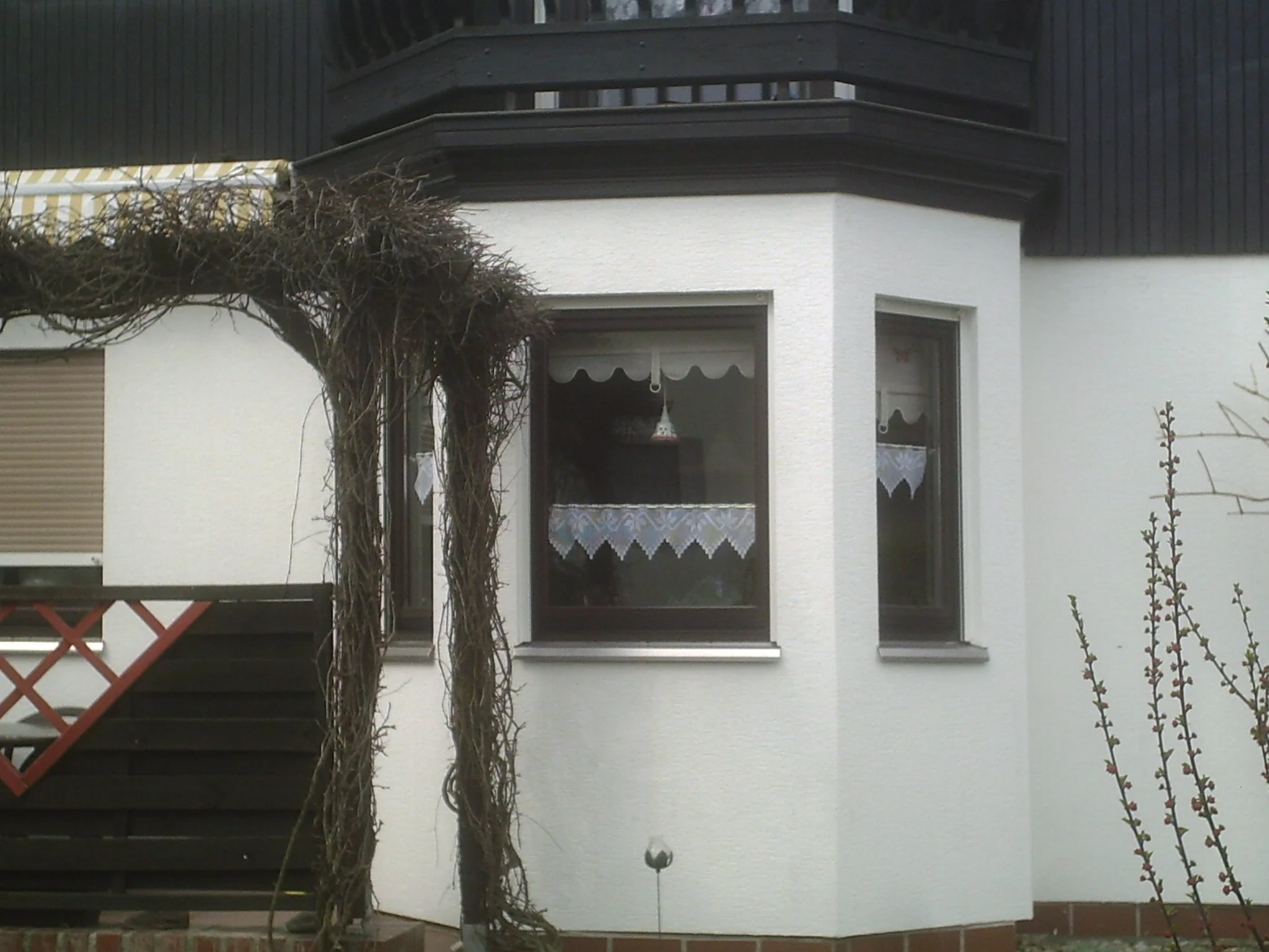 nun hab ich endlich auch so wunderschöne Gardinen, die ich mir schon lange gewünscht und anderswo immer bewundert habe. Dafür hab ich extra Fenster geputzt. Sieht eigentlich viel schöner aus, bin kein guter Fotograf, außerdem stört der nackte Wein.