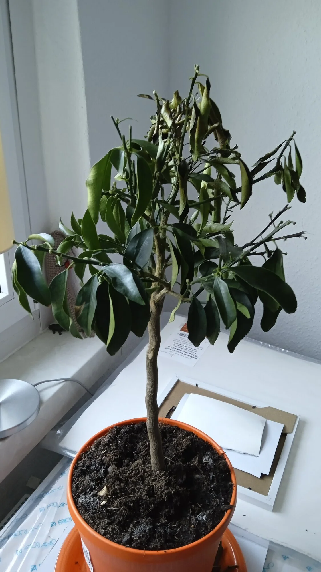 Wenn da am jetzigen Standort die Heizung an ist, ist das gar nicht gut für die Pflanze, die mags kühl und hell bis sie raus kann ...