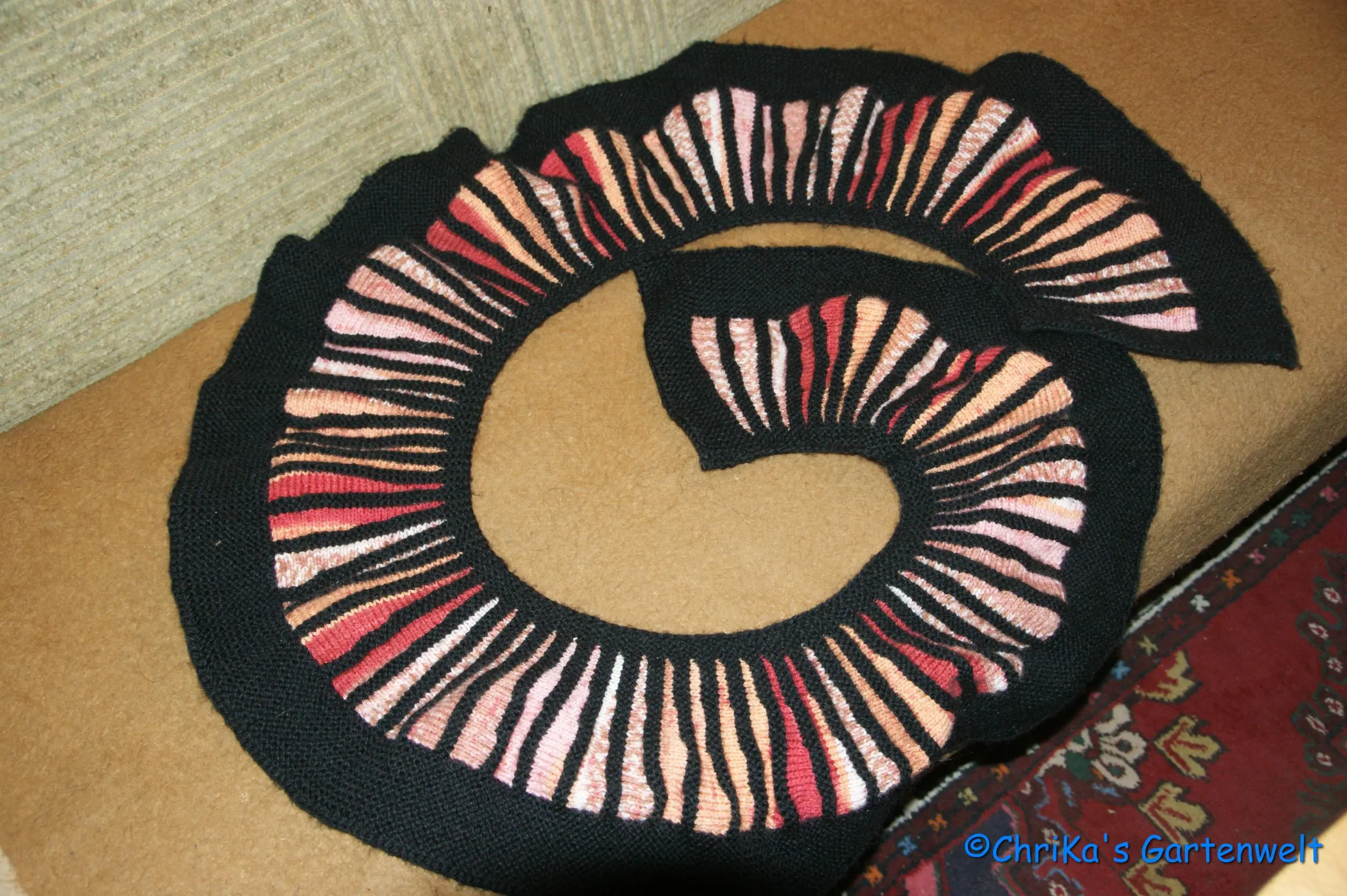 Dazu mit einem Römer (Strohkranz) als Basis oder einem Ring mit drumgwickeltem Zeitungspaper beginnen (die Verbindung mit Kleber wird nicht stabil genug).