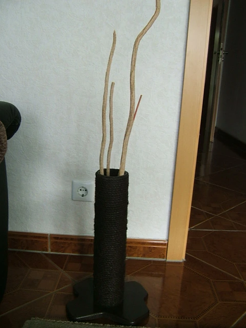 ihr alle, die hier euren Arbeiten hochgeladen habt, besitzt wundervoll fähige Händen. Euren Arbeiten verdienen einen dicken Lob. Ich habe bist jetzt noch nicht mit Stricken angefangen, aber ich möchte unsere (mein Mann und ich) Arbeit euch zeigen. Dieses "Möbelstück" haben wir im Sommer selber kreiert. Was noch übrig war, von dem WxKratzbaum, habe ich diese Vase meinem Mann in Auftrag gegeben.:grins: