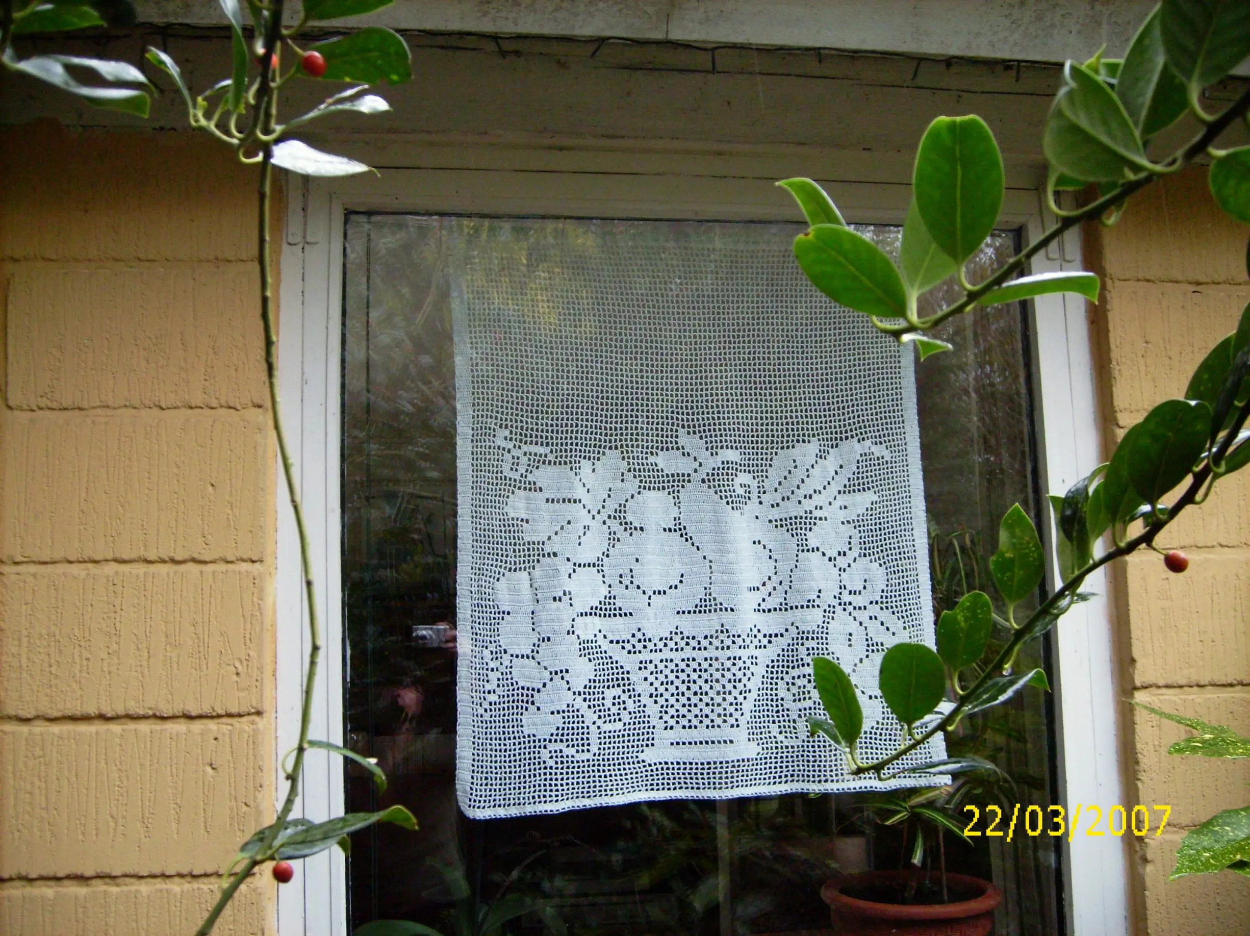 • So, habe schnell mal meine gehäkelten Gardinen fotografiert und meinen ersten selbstgebastelten Türkranz. An der Technik muß ich noch arbeiten das gafällt mir noch nicht so richtig.DSCI0103.jpgDSCI0102.jpgDSCI0104.jpgDSCI0101.jpg