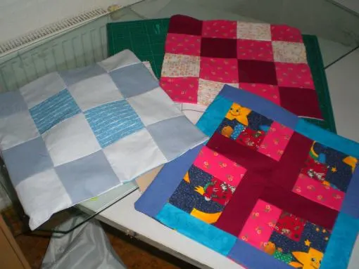 Ich näh` wohl erstmal noch ein Kissen. Diese 3 sind schon fertig. Allerdings auch nur als Patchwork und nicht gequiltet.