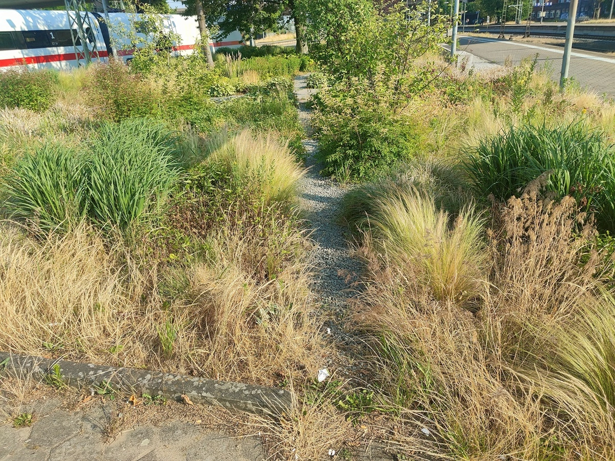 Zu den Bildern: die ersten fünf sind die Inspiration vom Bahnhof Altona, die letzten zwei ist der Teil bei mir im Garten um den es geht. In der Mitte steht noch eine junge Platane.