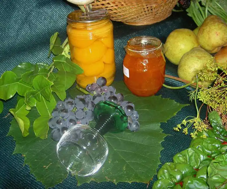 Tolles Stilleben, sind das im Glas Pfirsiche?