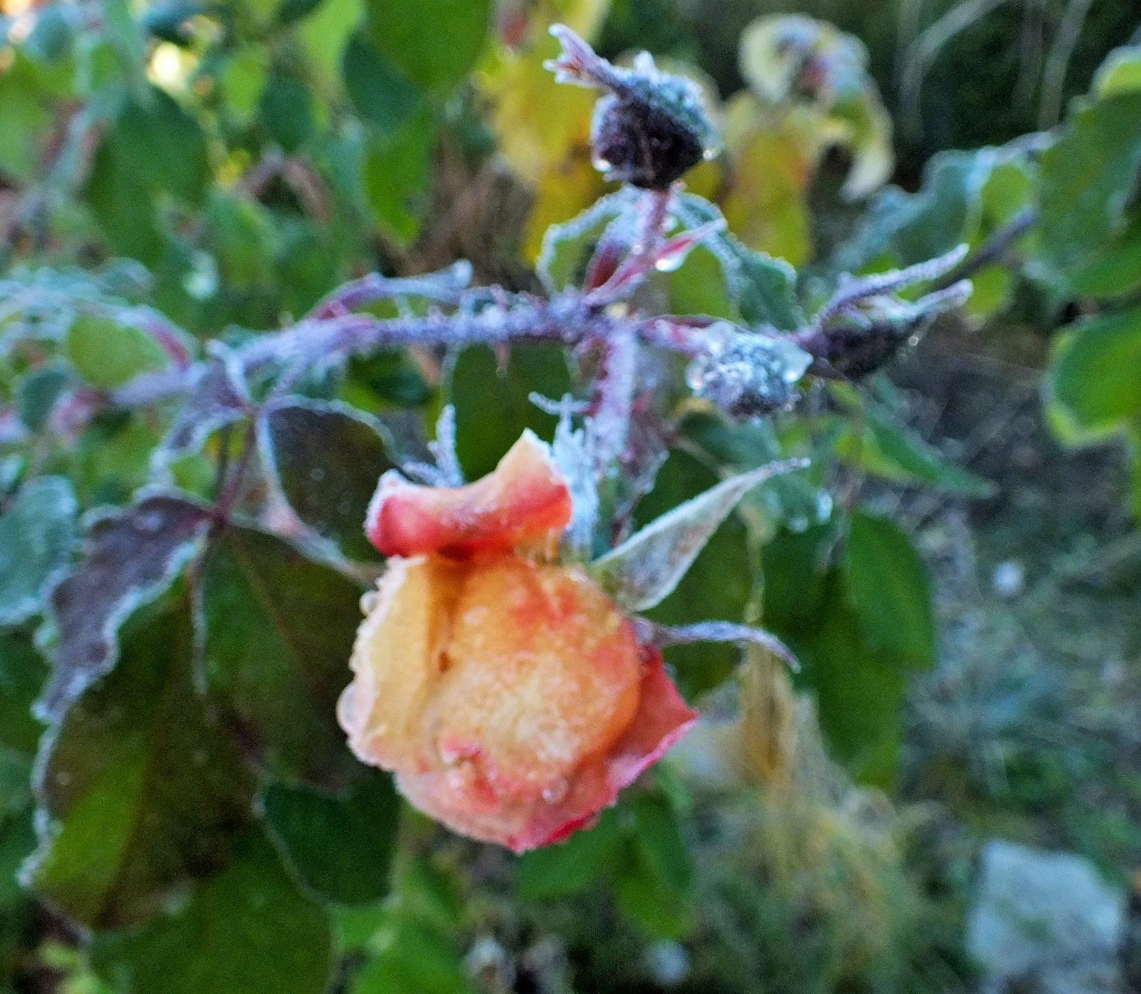der Herbst ist noch da aber morgens Wiesen,Dächer und Garten weiss und in der Nacht vom Sonntag zum Montag soll Schnee kommen der Winter scheint sich anzukündigen naja schaun wir mal aber wie heißt es schlechter Sommer strenger und zeitiger Winter.