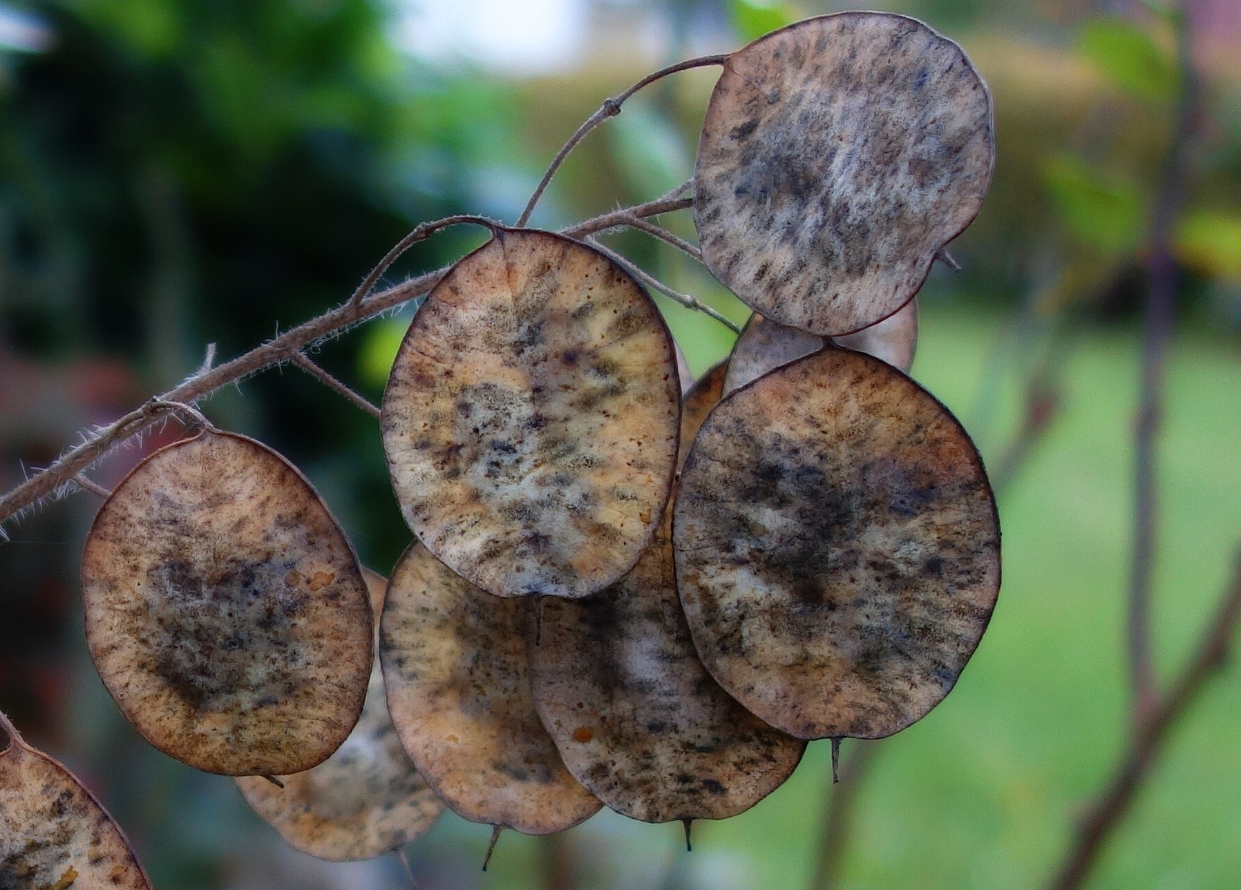 Sogar die Lunaria-annua-Samen stehen betrübt und schmuddelig da, anstatt silbern zu glänzen!