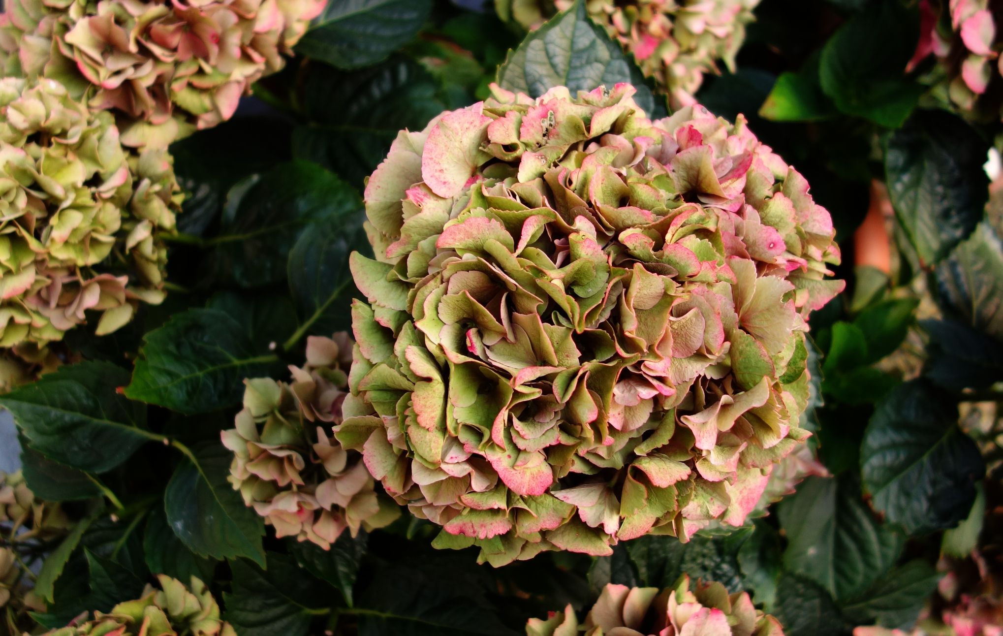Die Hortensien sind lang verblüht, sehen aber unermüdlich gut aus.