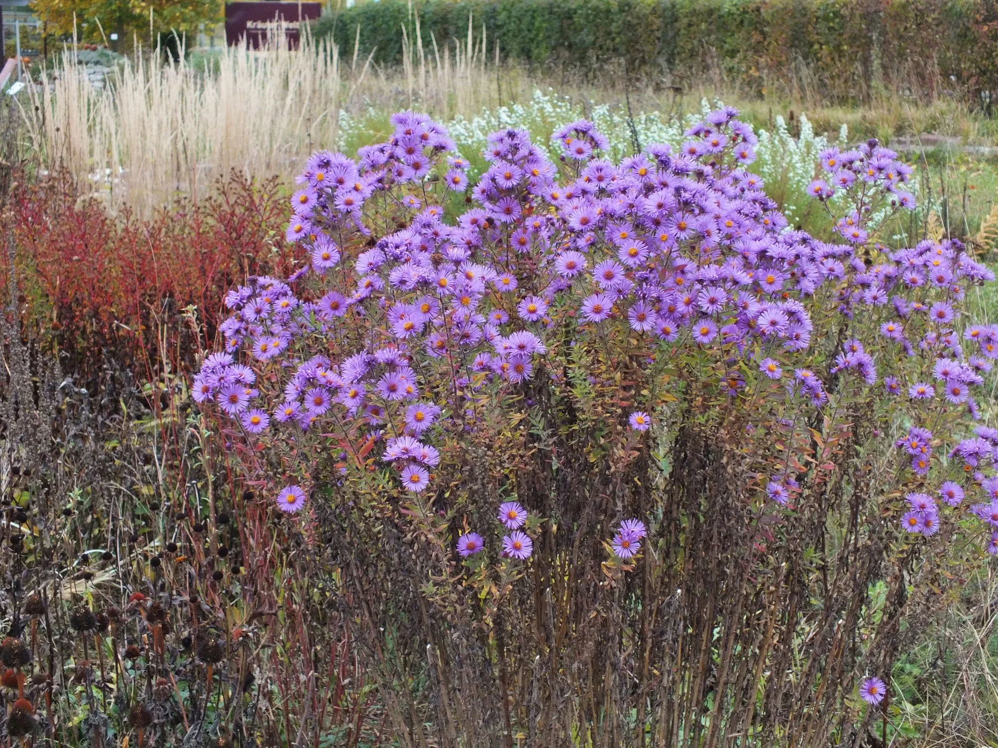 Ja, das ist so eine schöne, zarte und hohe langblühende Herbstaster. Die liebe ich sehr. Die will ich im Frühling umpflanzen. Da kommte das Gras nach hinten, wo die Herbaster jetzt steht und sie weiter nach vorne. Die sieht man von vorne gar nicht so gut wegen dem Gras.