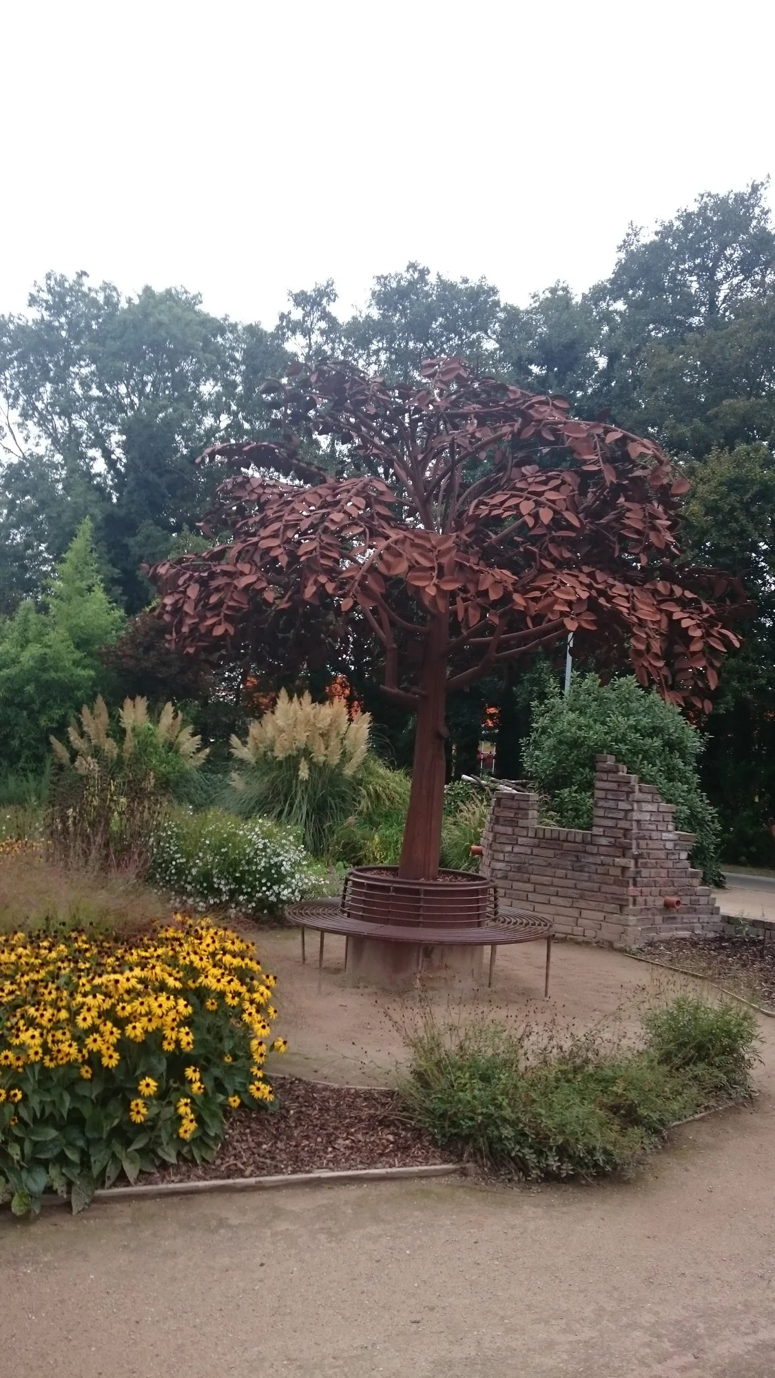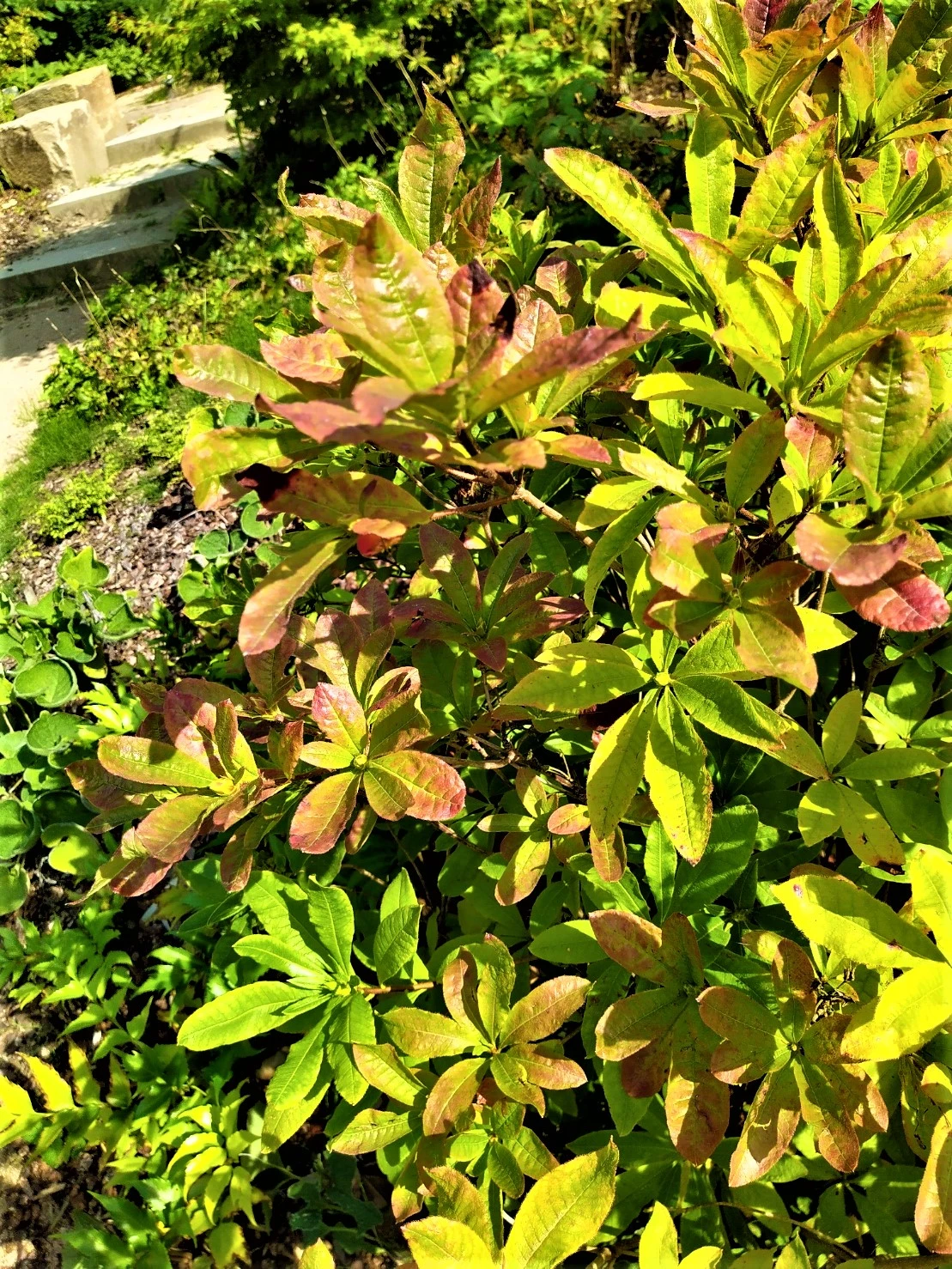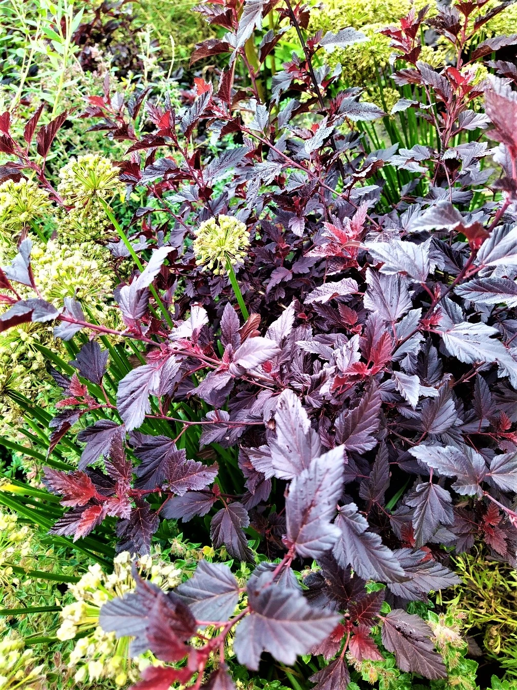 Das ist ein Schneefelberich - erst spät gepflanzt, deshalb ist er noch so klein. Ich hab aber auch erst danach gelesen, wie gross er werden soll.Was ist denn das für eine Pflanze mit den roten Blättern?