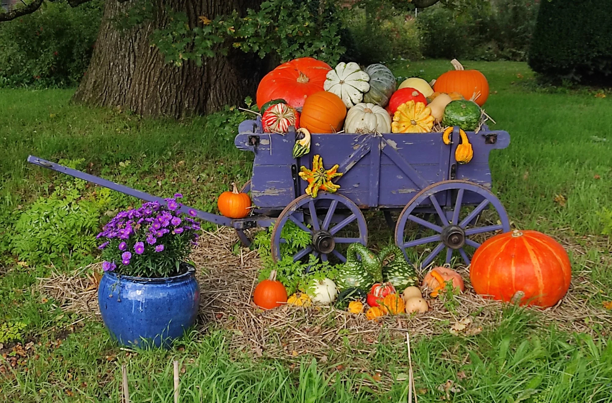 ein riesiges Kürbisfeld versüßen den Herbstzauber.