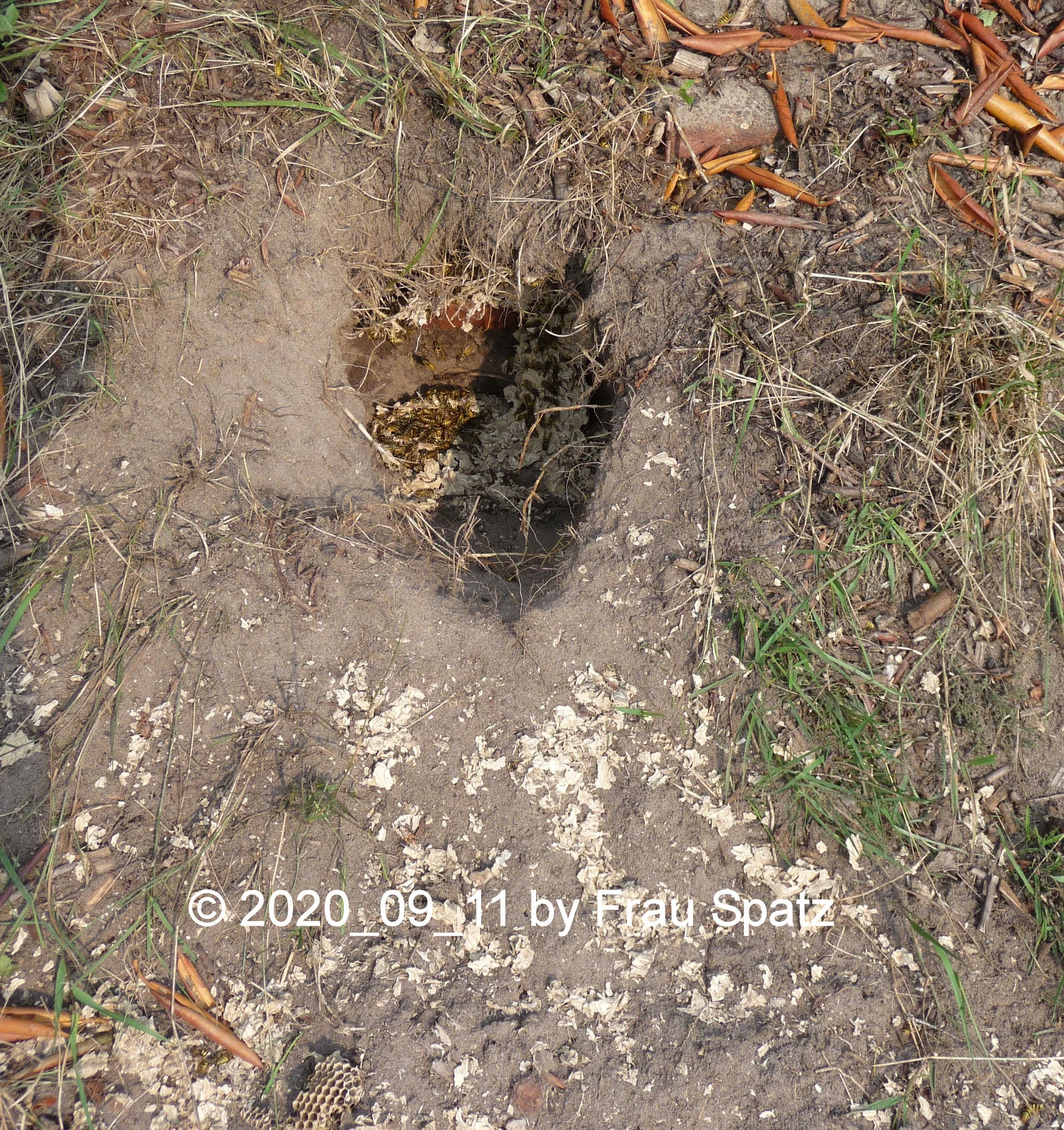 Vielleicht hilft es ja, wenn Du noch einen feinmaschigen Draht mit drunterlegst, sodaß nur die WespenNachher werde ich weitere Dachschindeln zum Schutz anbringen, damit die Kleinen sicher sind.