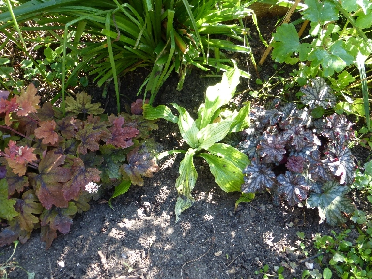 Eine andere Heucherella hab ich zeitgleich gekauft, aber noch nicht geknipst. Klassisch grünschwarze Blätter.