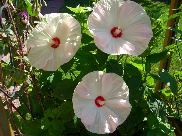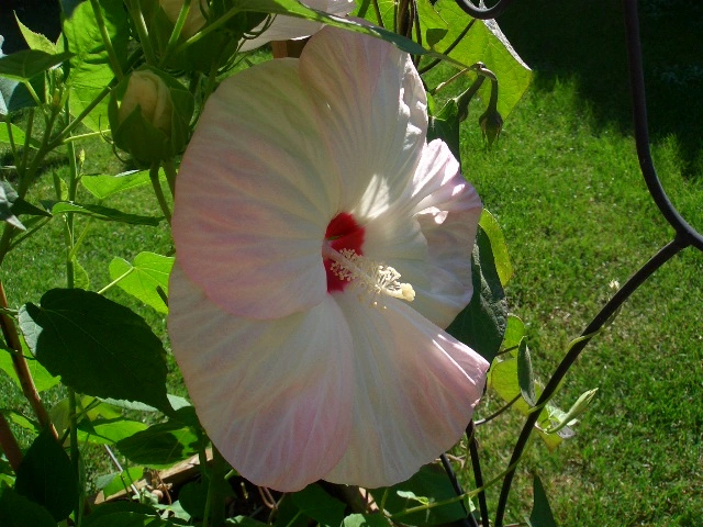 Desshalb hab ich im Garten ein Loch gebuddelt, einwenig Hornspäne rein, und den Hibbi reingesetzt. Und tatsächlich, Anfang Mai machte er zögerliches Grün aus der Erde heraus, und eben, jetzt auch tolle Blüten! :D