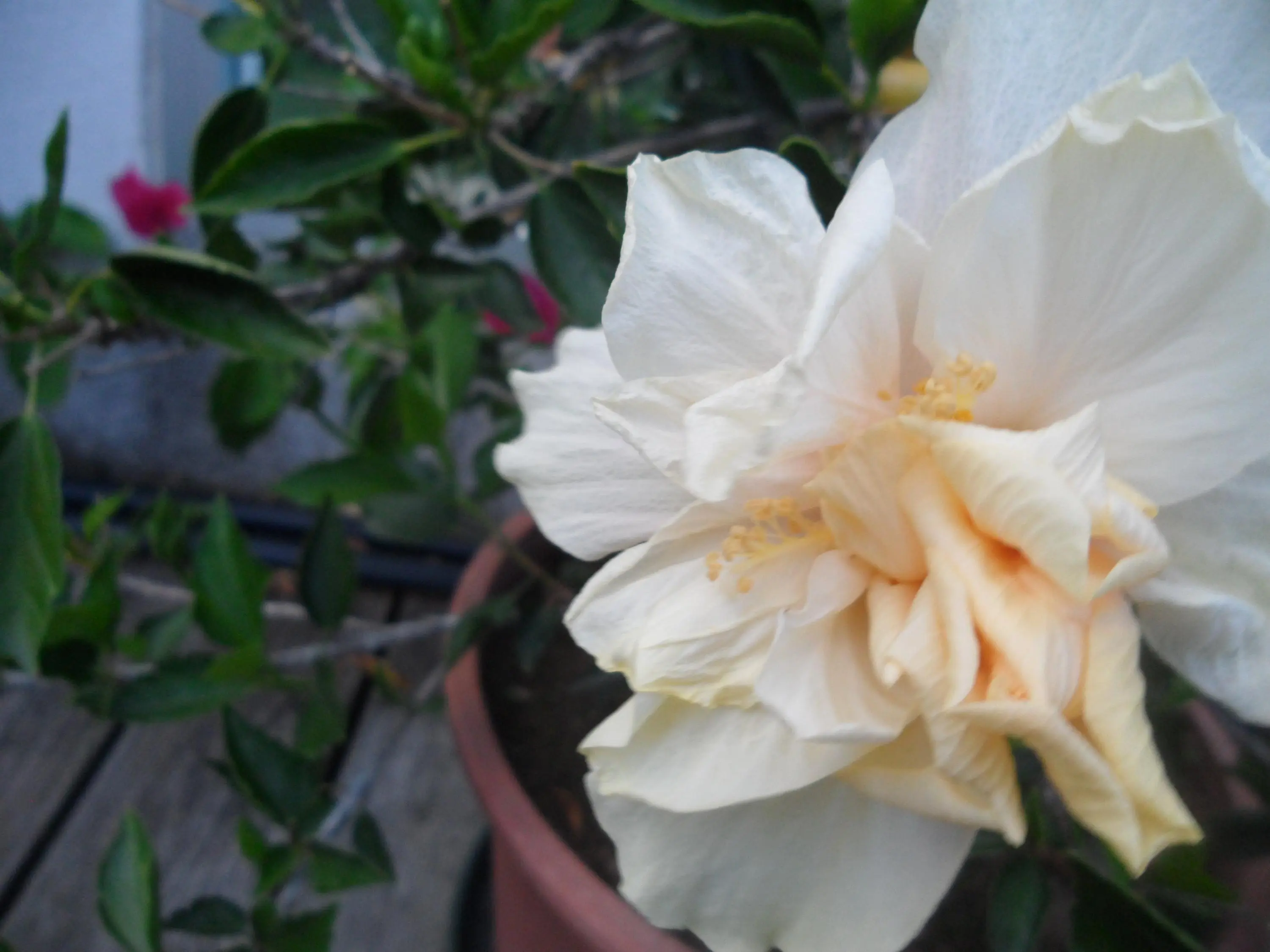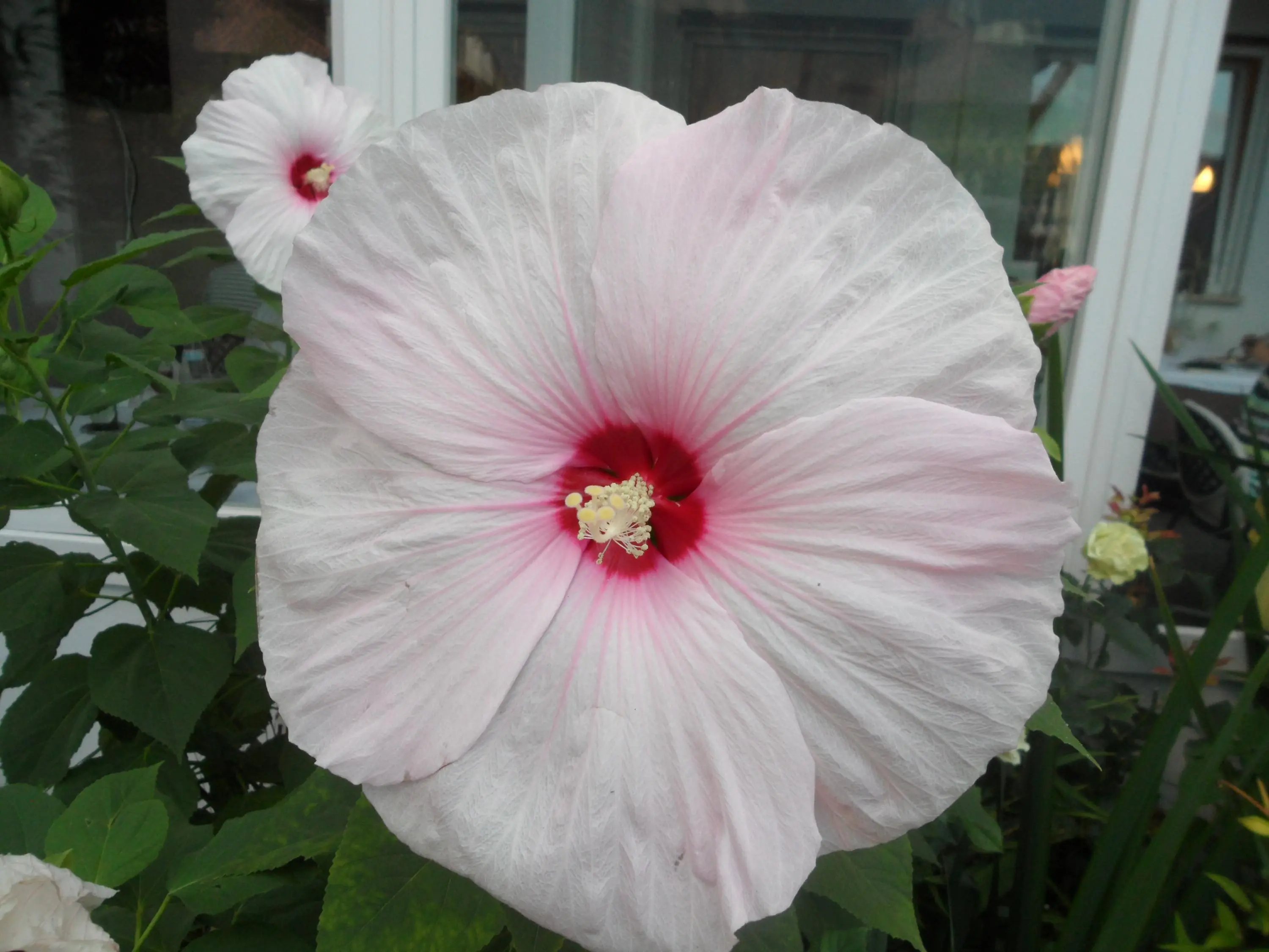der inhaber unseres urlaubshotels in südtirol hat mehrere dieser riesenblütigen hibiscen. die blüten sind zwischen 15-20cm im durchmesser :cool:
