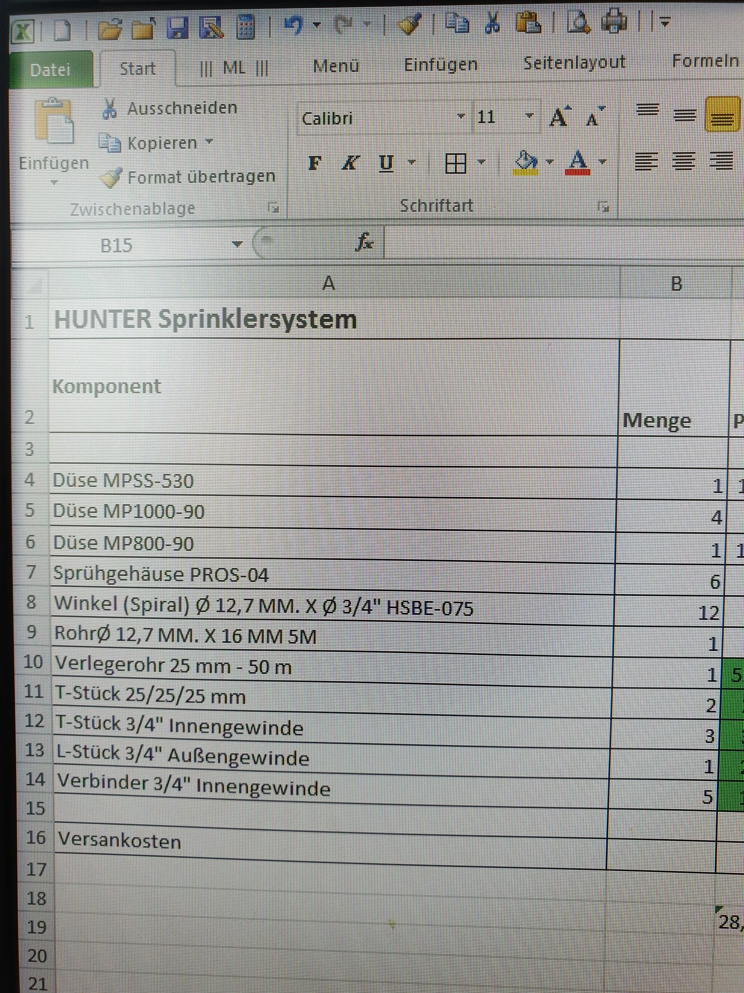 Das 25mm Rohr ist schon etwas störrisch. Der T-Verbinder muss exakt so im Rohr verbaut sein dass das Gewinde nach oben zeigt. Um die Düse exakt in der Höhe zu platzieren mußt du das komplette Rohr entweder anheben oder absenken. Seitlich wird es noch schwieriger bis unmöglich, je breiter der Graben um so schlingelschlangelmäßig wird die Regneranordnung (nix für Schöngeister).