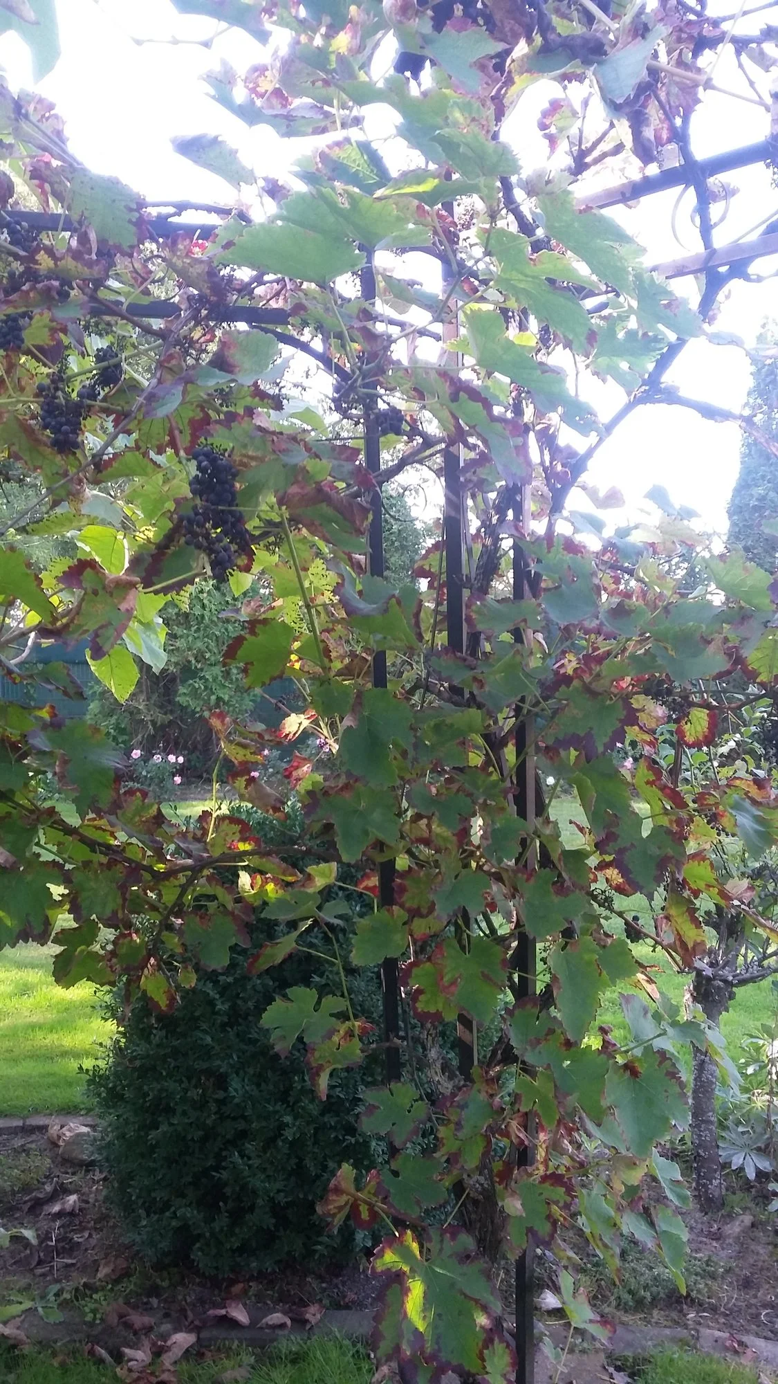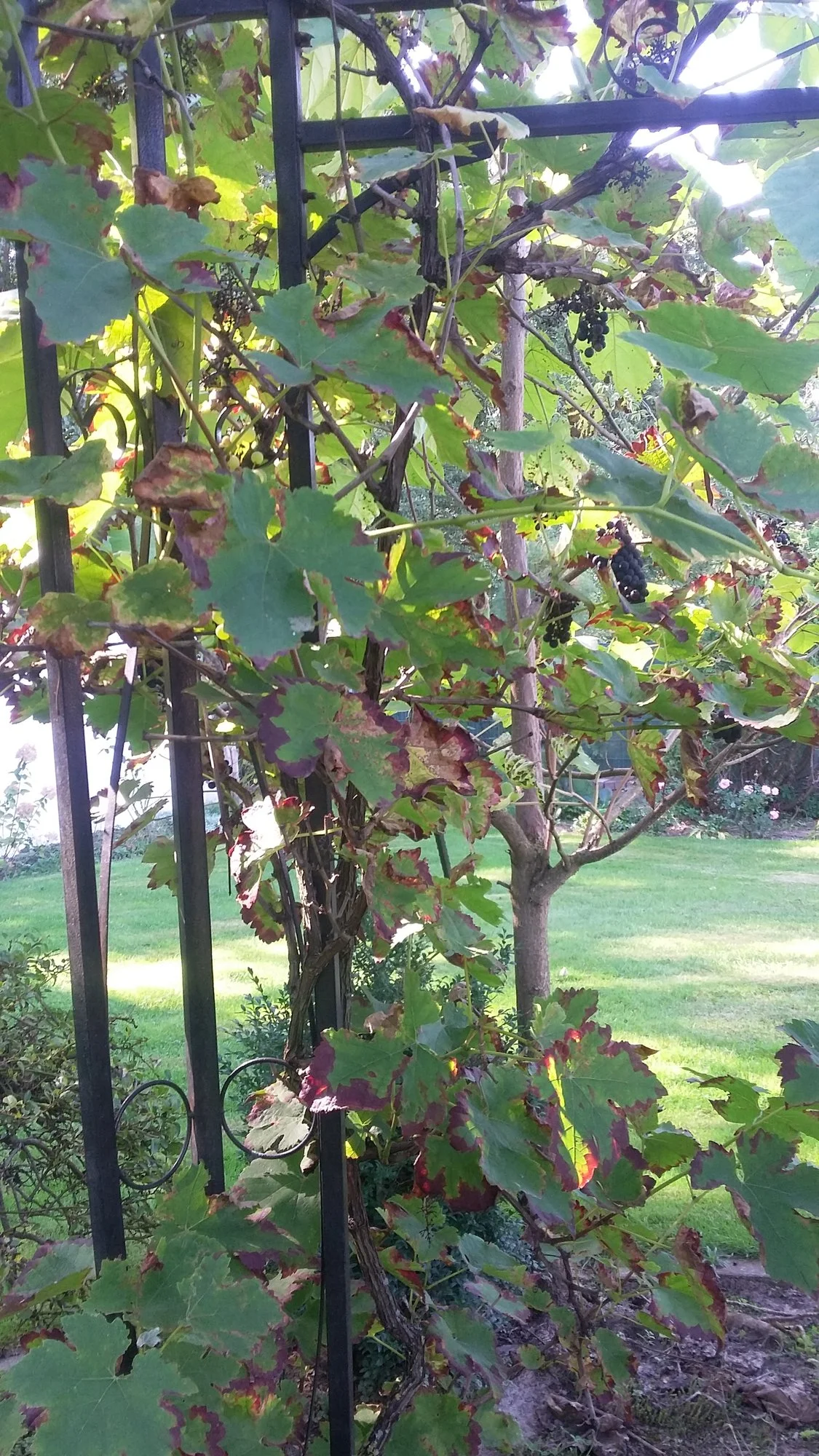 1.) 20200920_135538.jpg..20200920_135532.jpg Die beiden Rotweinpflanzen sollen raus, da die Trauben nicht schmecken ( Keltertrauben )und die Blätter jedes Jahr von Schorf befallen sind.