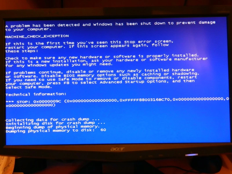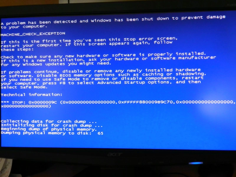 Das MACHINE_CHECK_EXCEPTION bedeutet, dass ein Bauteil der CPU gemeldet hat dass es ausserhalb seiner Spezifikation betrieben wird, und deshalb nicht richtig funktioniert. Leider ist dies nicht wirklich hilfreich wenn man nun herausfinden möchte, welches Teil das ist. Das Auswerten des Minidumps, das das BIOS auf die Festplatte schreibt, kann einem Fachmann *manchmal* Hinweise liefern, oft ist das aber auch mehr Raten als wirklich helfen. Der PC ist ja nicht neu, also wird es nicht daran liegen dass Bauteile nicht zusammen passen oder falsch konfiguriert sind - eher dass vielleicht aus Altersgründen langsam etwas nicht mehr stimmt.