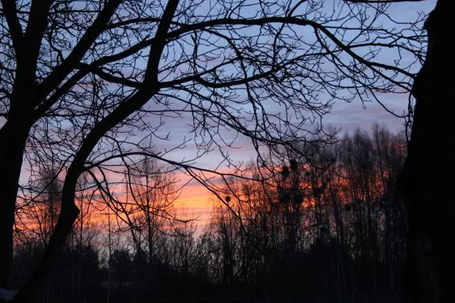 • Der Schnee schmilzt auch hier weg,aber zum Glück kein Regen mehr.Morgendämmerung vom 29.1.