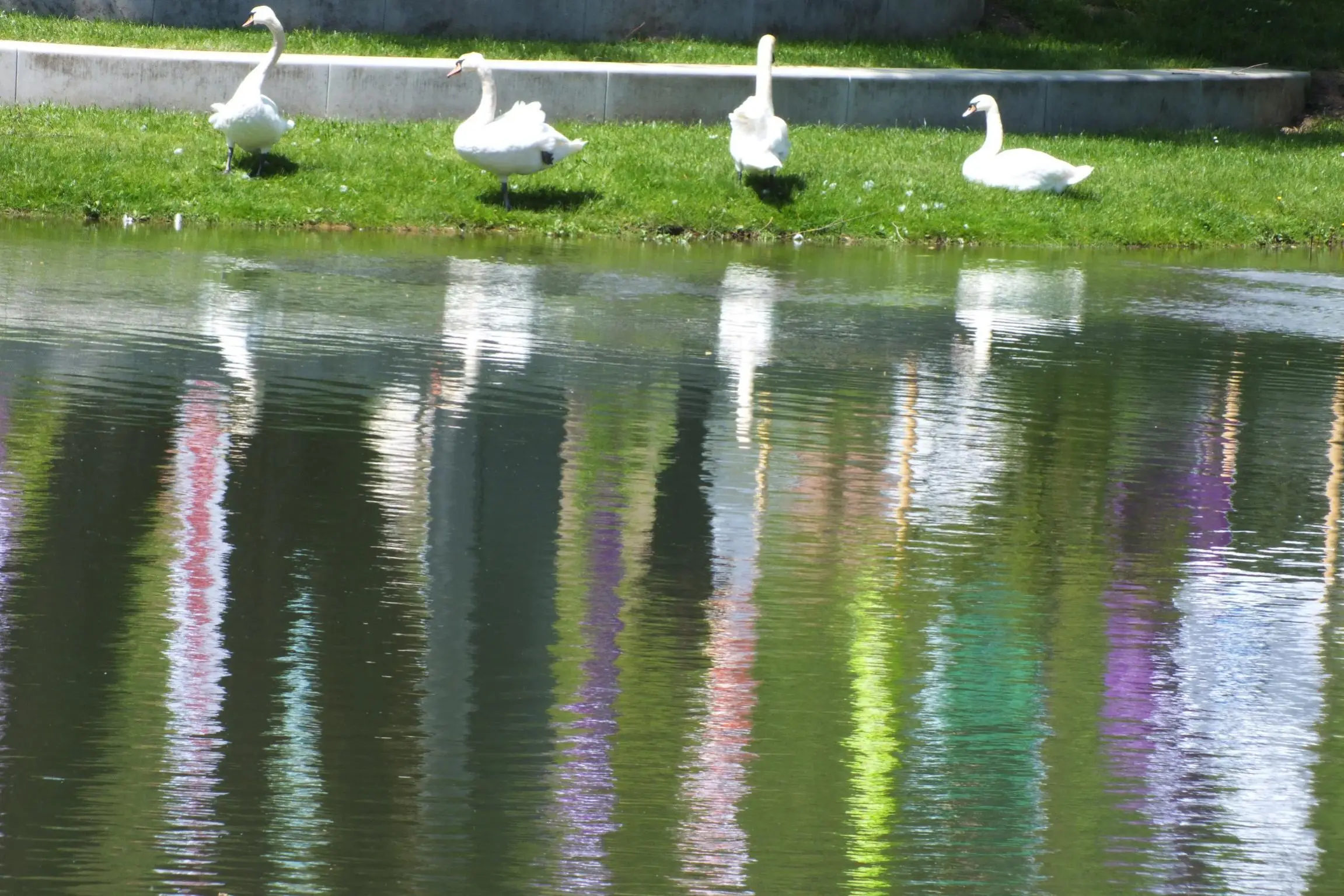 wie süß, die Schwäne spiegeln sich im Wasser, 8)!!