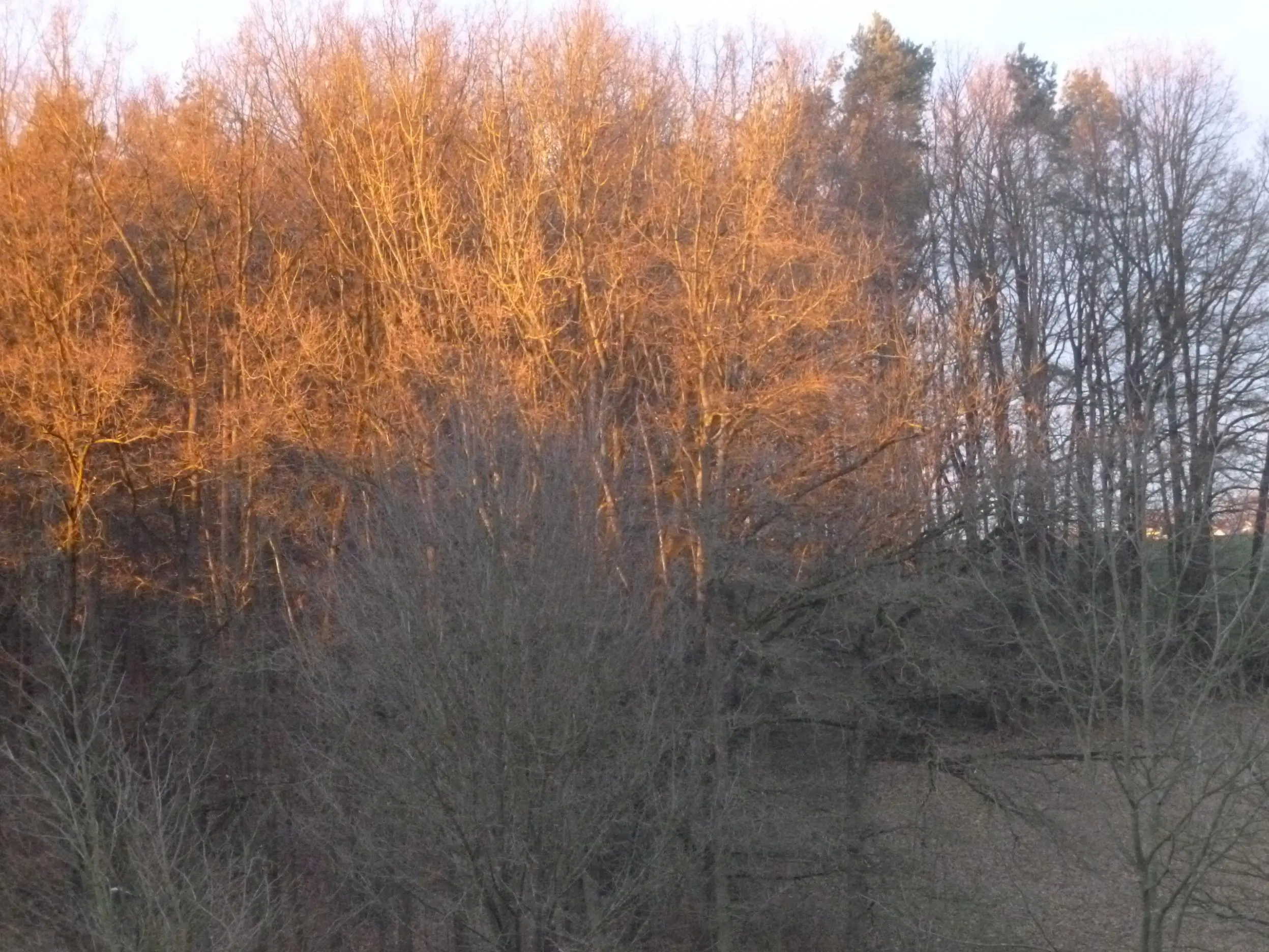 die Aufnahmen sind vom Feldweg in der Nähe aus gemacht, anschließend war ich wegen der Hühner kurz im Garten da zog eine orange angestrahlte aufgerissene Wolkendecke über uns hinweg, ich hatte die Kamera leider auch nicht griffbereit.