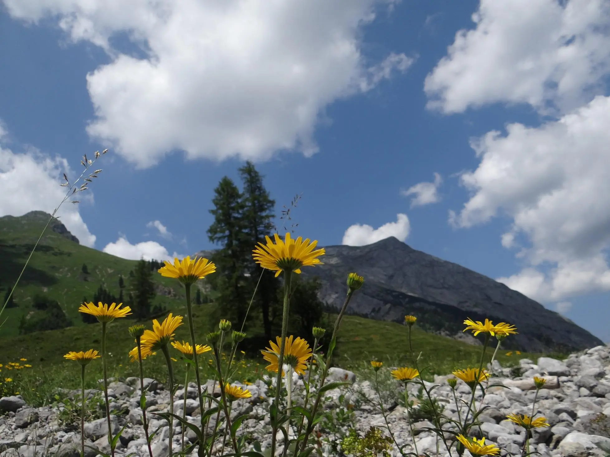 Das Bild ist nicht auf den Kopf gestellt, sondern es zeigt die Spiegelung des Himmels in einem kleinen See. Diese Aufnahme konnte ich gestern während unserer Wanderung machen.