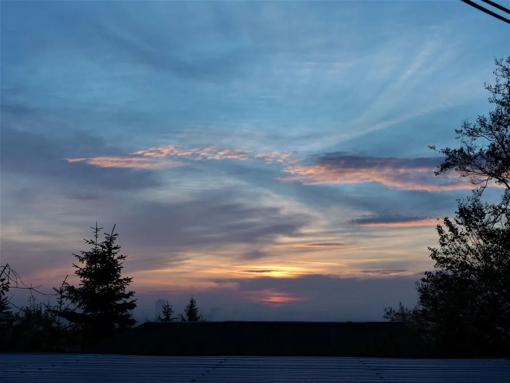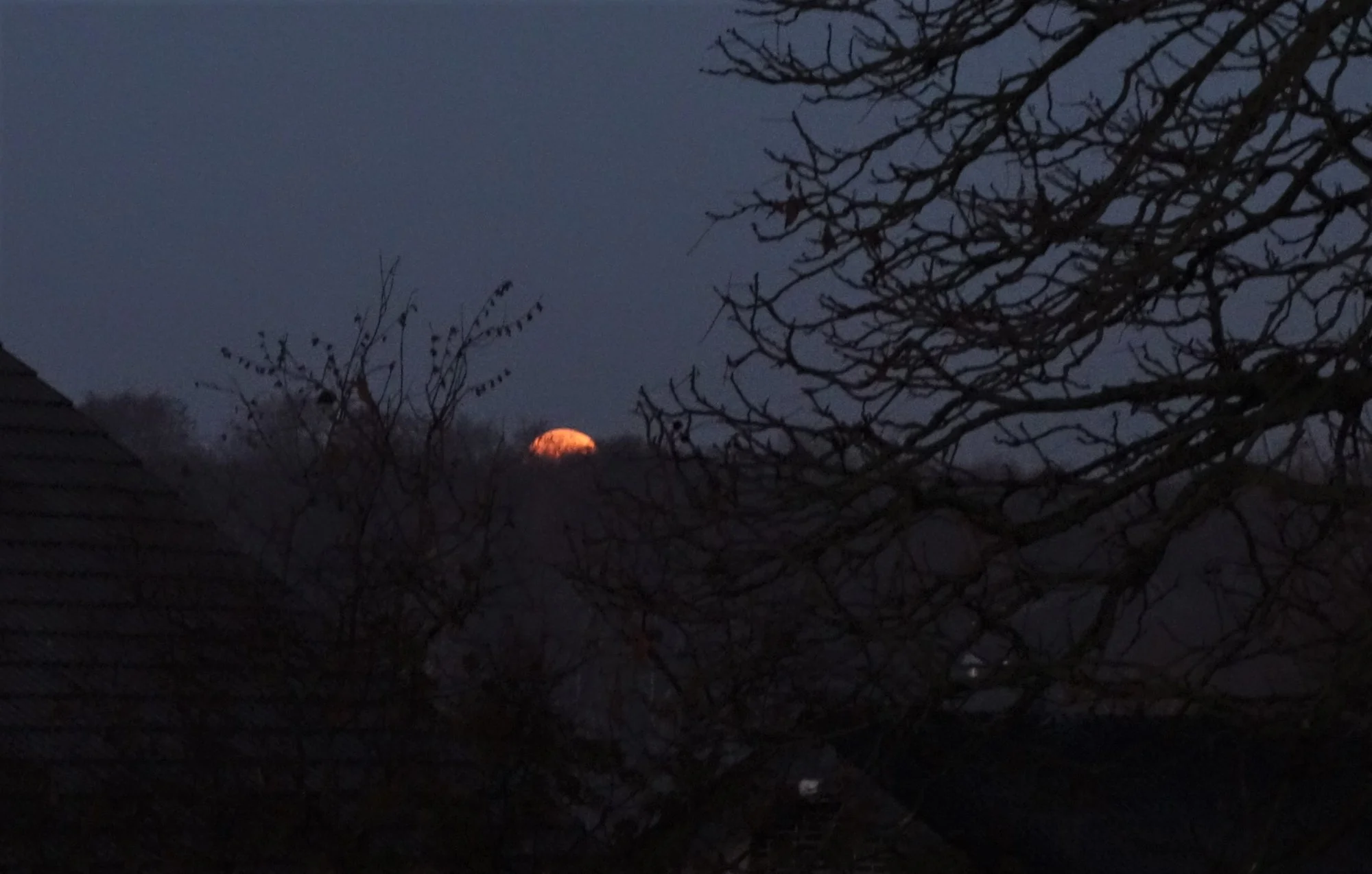 Wenn ich zerwuselträumt morgens ins Bad wanke, rechne ich nicht grad mit einem Licht da hinten im wilden Westen. Es hat mehrere Momente gedauert, bis mir einfiel, dass nicht die Sonne falsch aufgeht, sondern dass das der Monduntergang sein könnte!