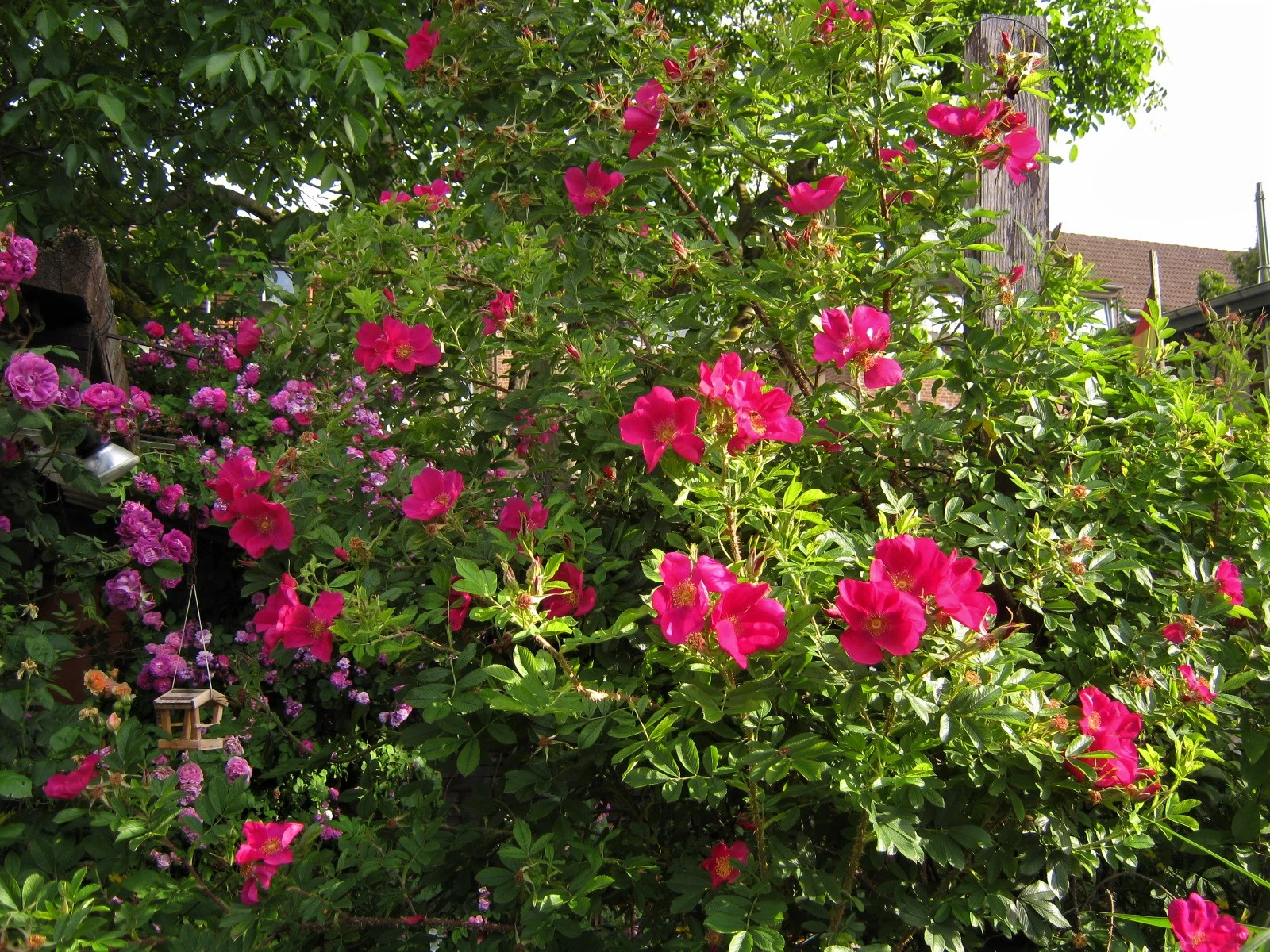 Ich mag auch die ungefüllten Rosen, Ann Endt wird sehr groß, ich schätze mal dass sie gut 2,50 m H und 2 m breit werden kann. Ich schneide sie stark und binde sie an, hat bei mir eine Höhe von 2 m und etwa 1,50 m breit,
