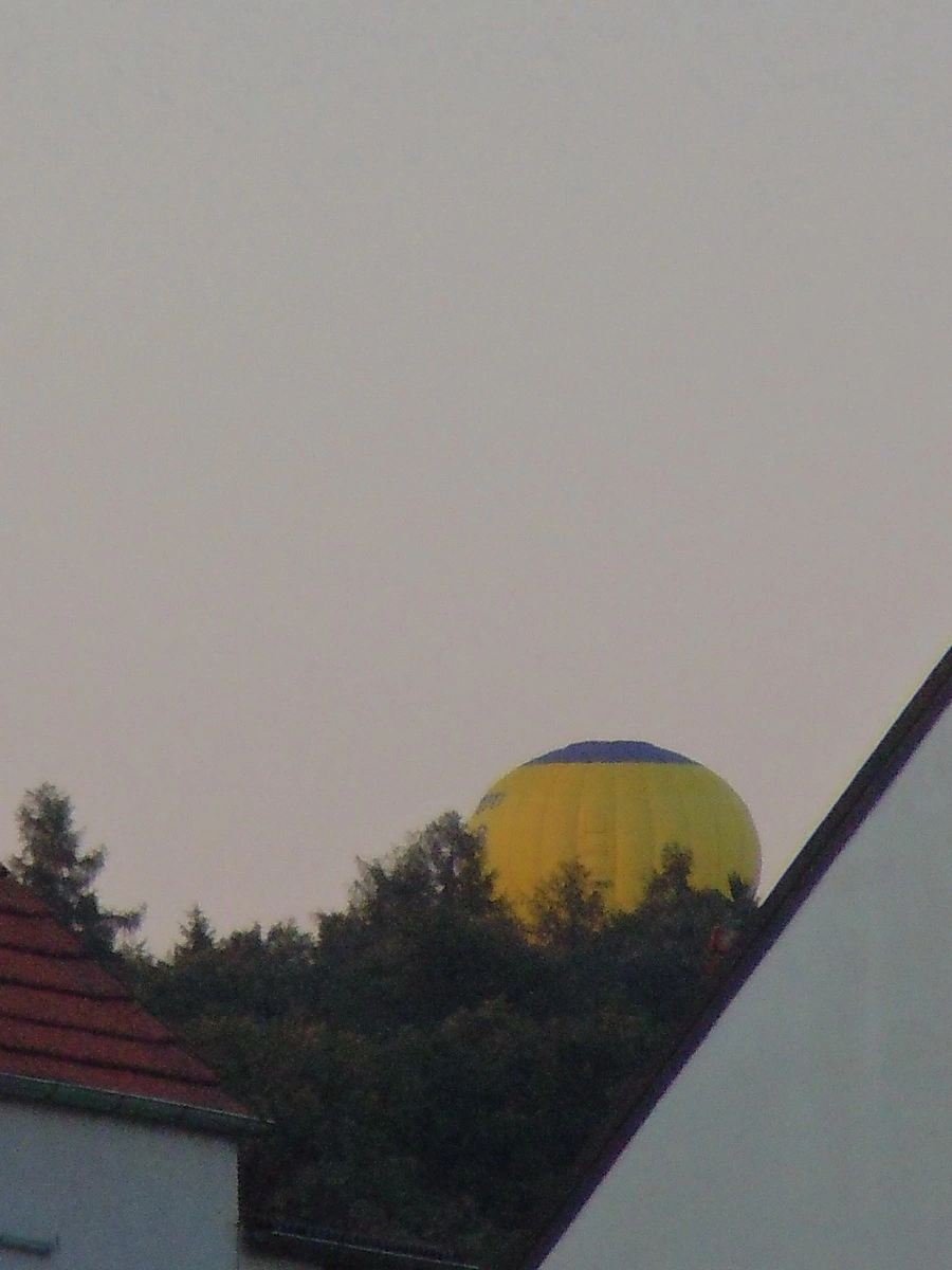 Toll, wie der riesige Ballon aus den Bäumer hervorsteigt.