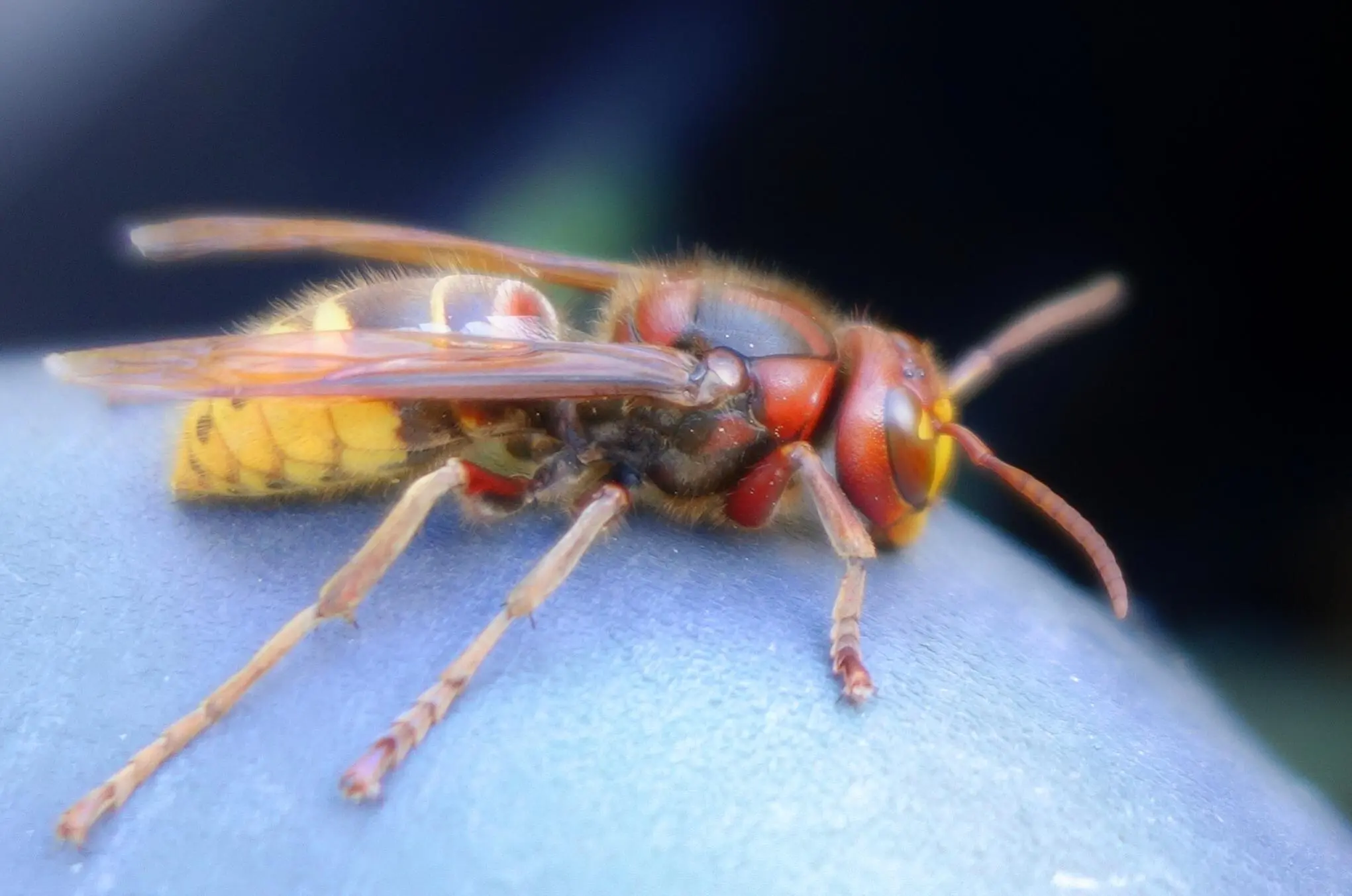 Keine Ahnung, wie sich's anfühlt, wenn man sich auf eine Hornisse setzt. Wär auch zu schade um das hübschebunte Tierchen.