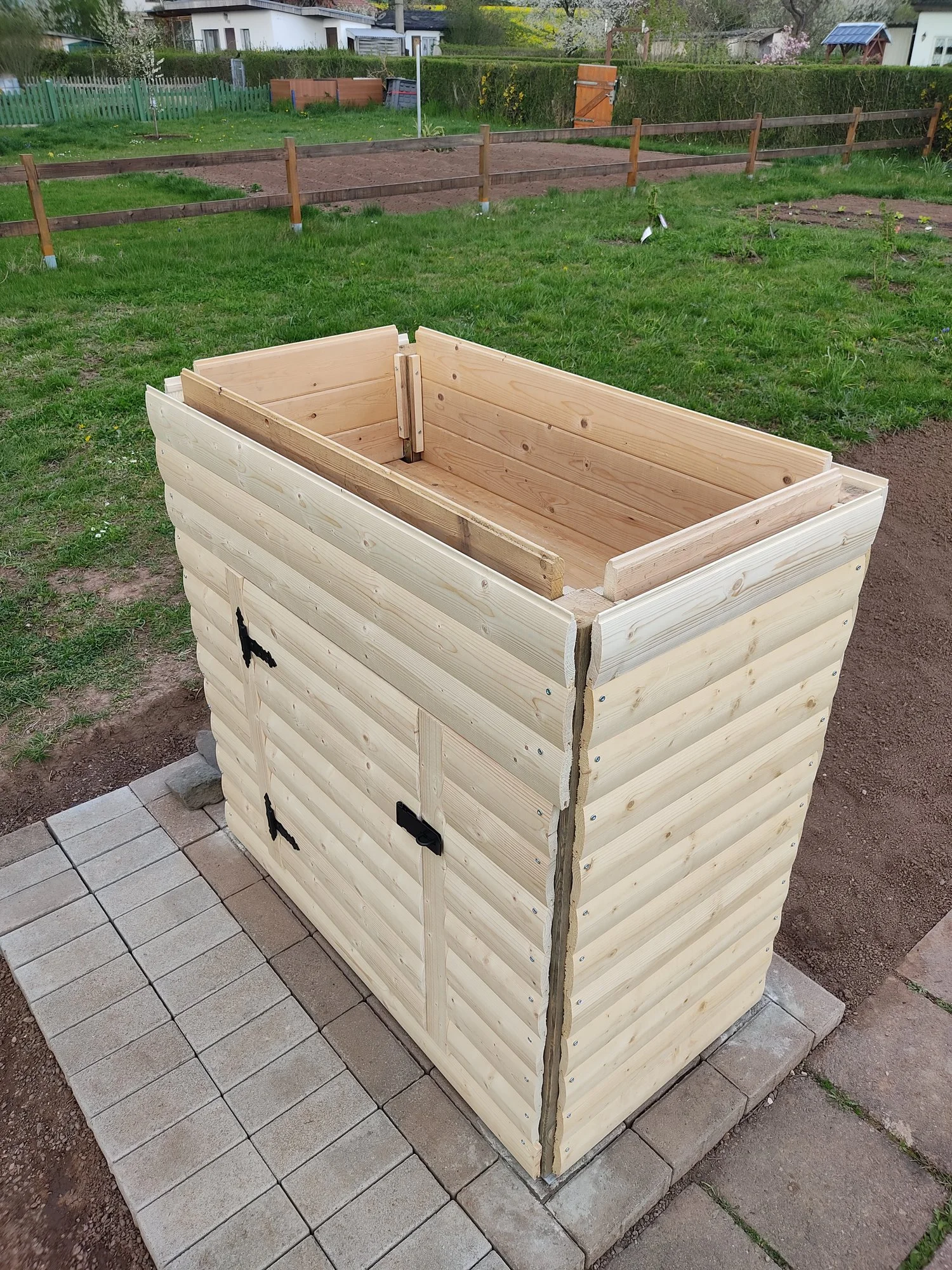 Ich habe mal ein Bild angehangen. Wie gesagt es ist noch nicht fertig. Es fehlen noch die Eckleisten an der Kiste damit die Ecken schön aussehen. Und die oberen Bretter müssen noch auf Höhe der Pfosten geschnitten werden und dann oben ein Rahmen drauf.