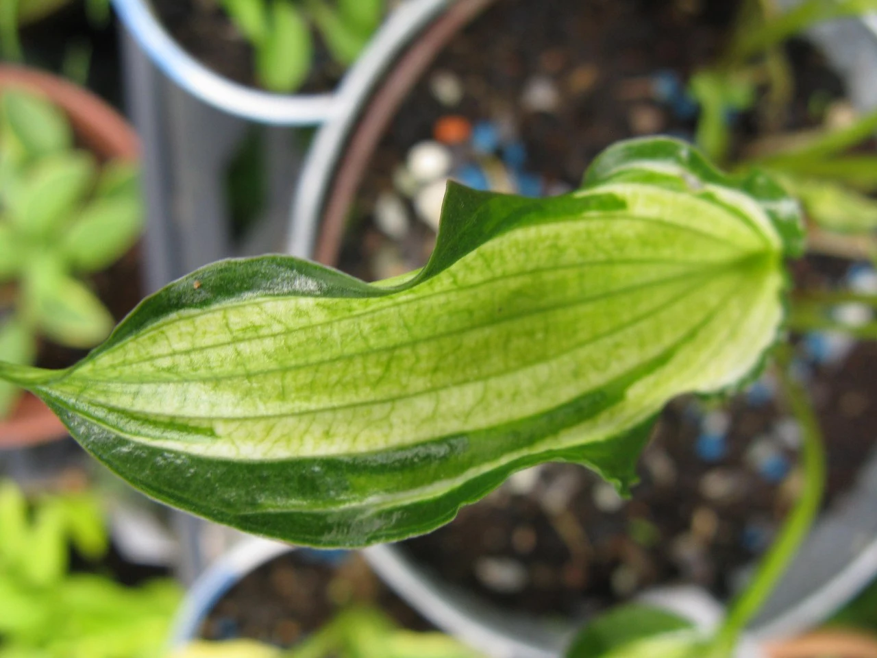 Meine andere Neuerwerbung hat noch viel größere Blätter, leider aber auch Trockenheitsschäden (braune Blattränder) und sieht derzeit nicht sooo fotogen aus, deshalb hab ich noch kein Bild gepostet. Hoffentlich erholt sie sich, damit ich sie vorstellen kann.
