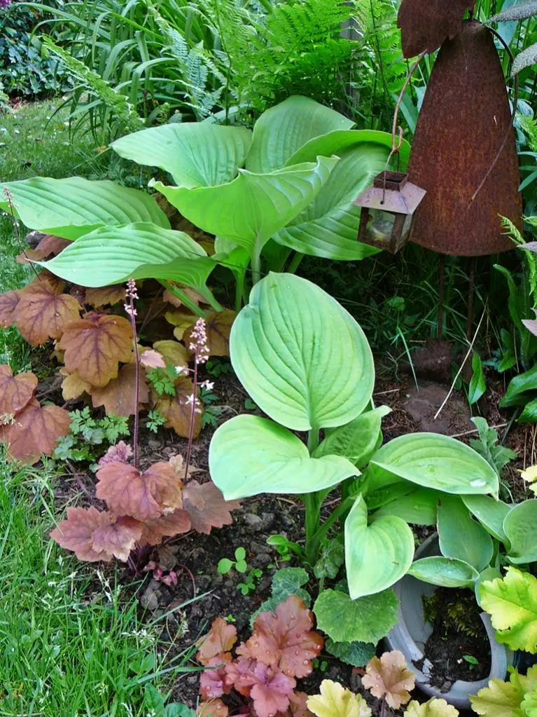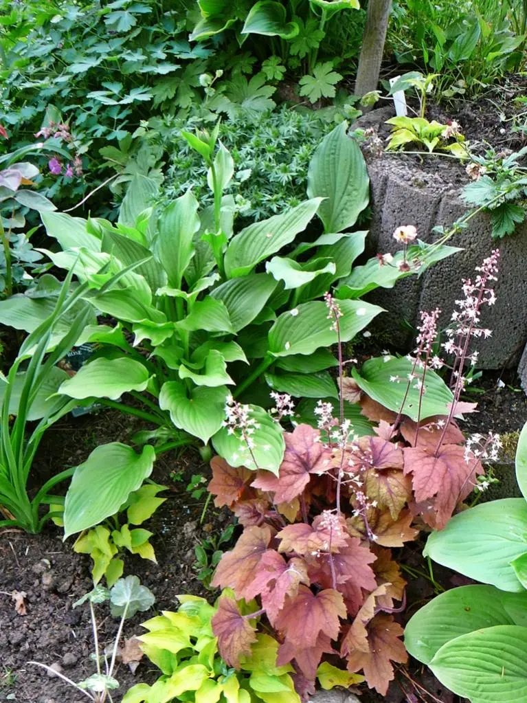 • Bis das bei mir so schön zugewachsen ist, dauert wohl noch zwei oder drei Jährchen. Sieht richtig gut aus mit den Heuchera dazwischen.
